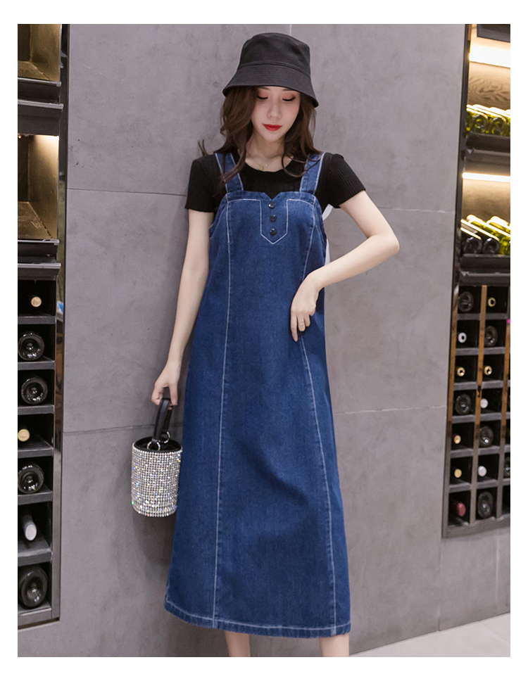 2023夏季新款大碼胖mm百搭寬松背帶牛仔裙女洋氣長款吊帶連衣裙潮