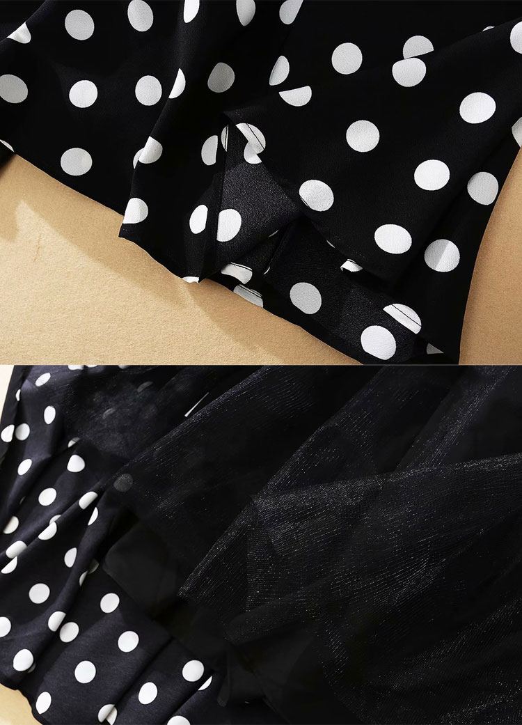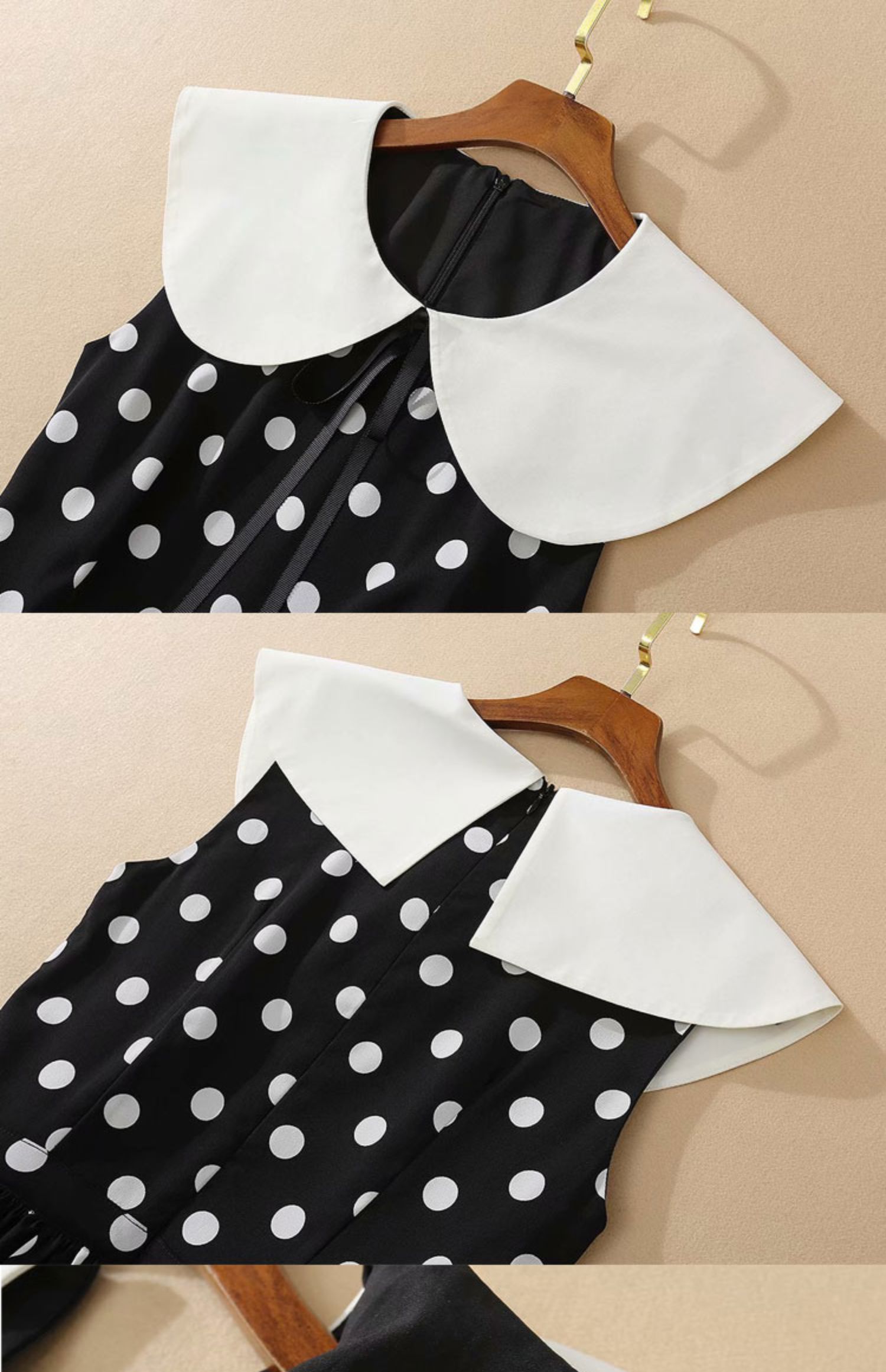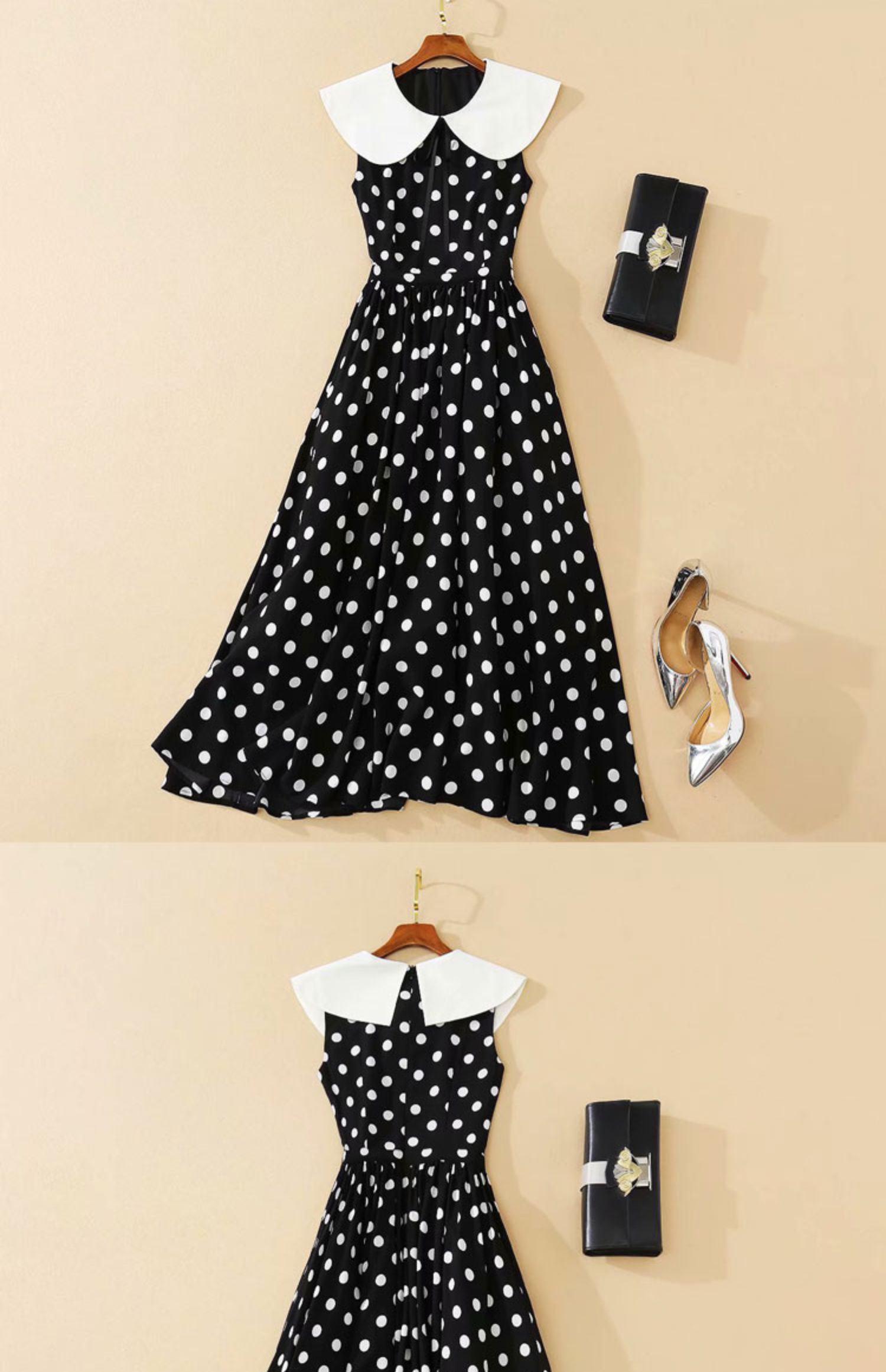 法式優雅2023年夏季時尚走秀新款高端女裝中長款波點印花連衣裙潮
