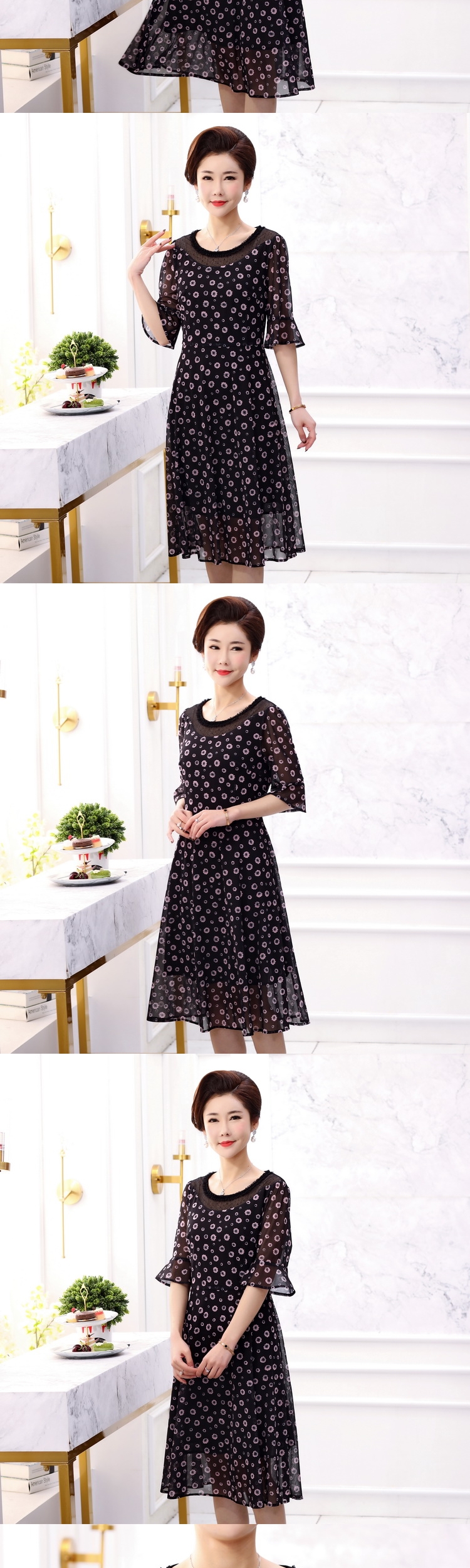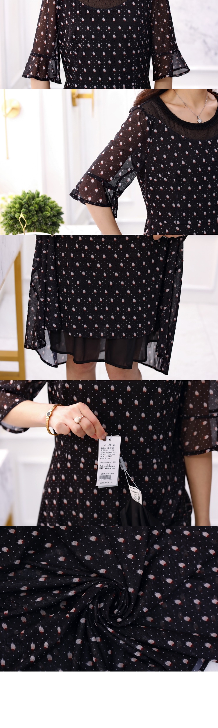 春夏女士碎花裙優雅淑女氣質中長紗網連衣裙荷葉邊七分袖洋氣媽媽