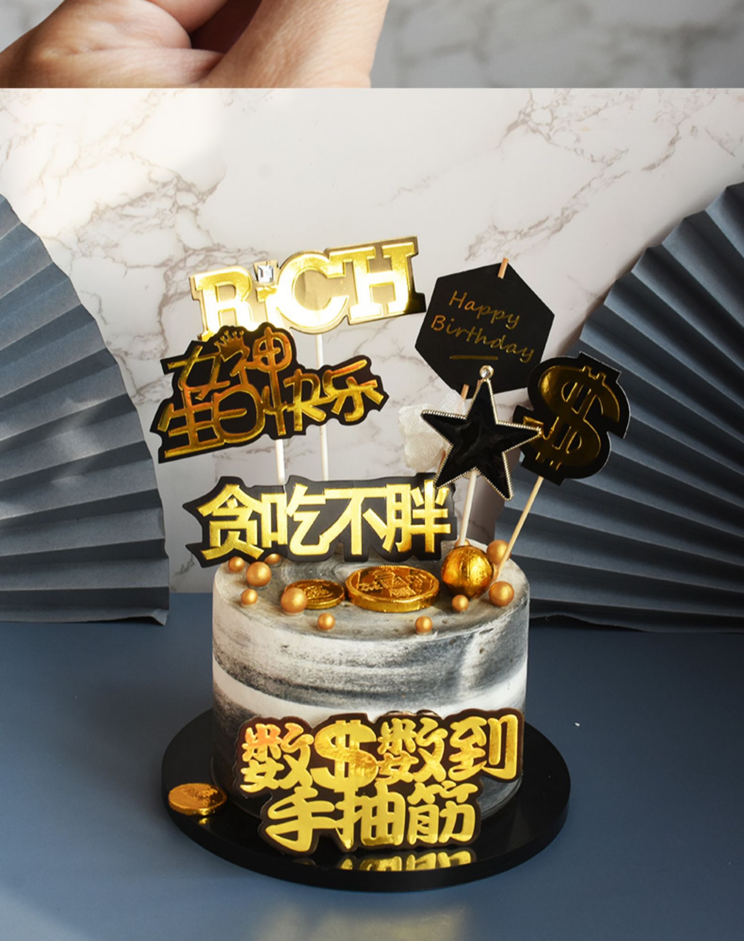 男神一夜暴富蛋糕烘焙派對生日擺件