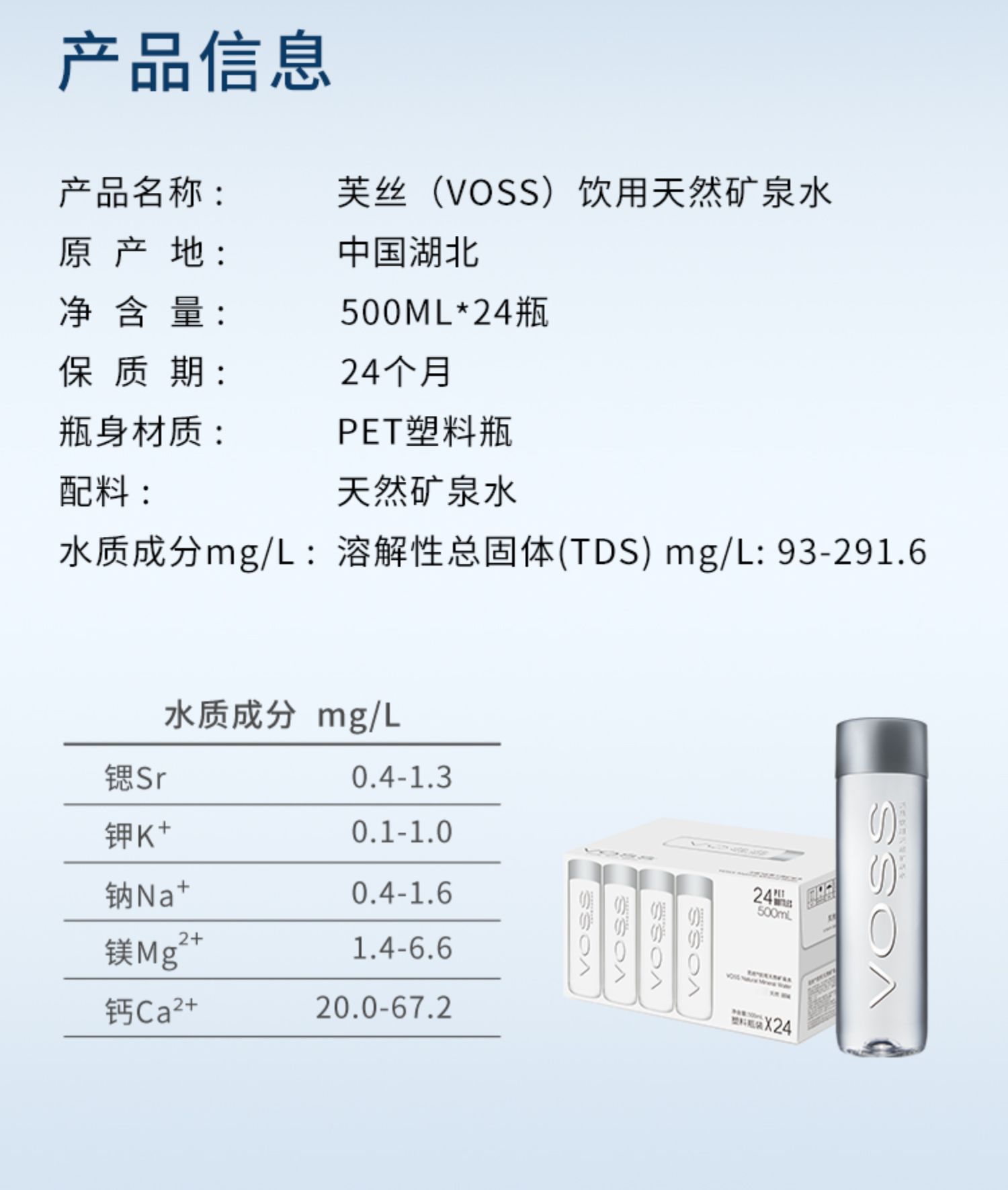【直播推薦】voss芙絲天然礦泉水弱堿性高端飲用水500ml*24瓶