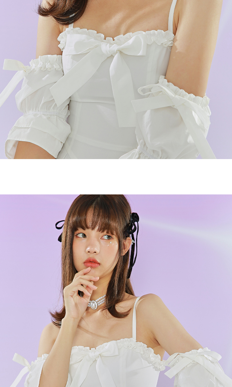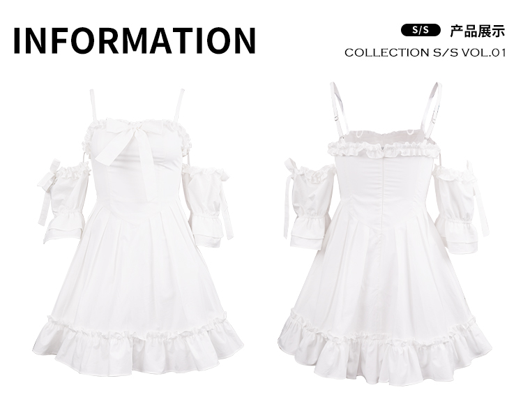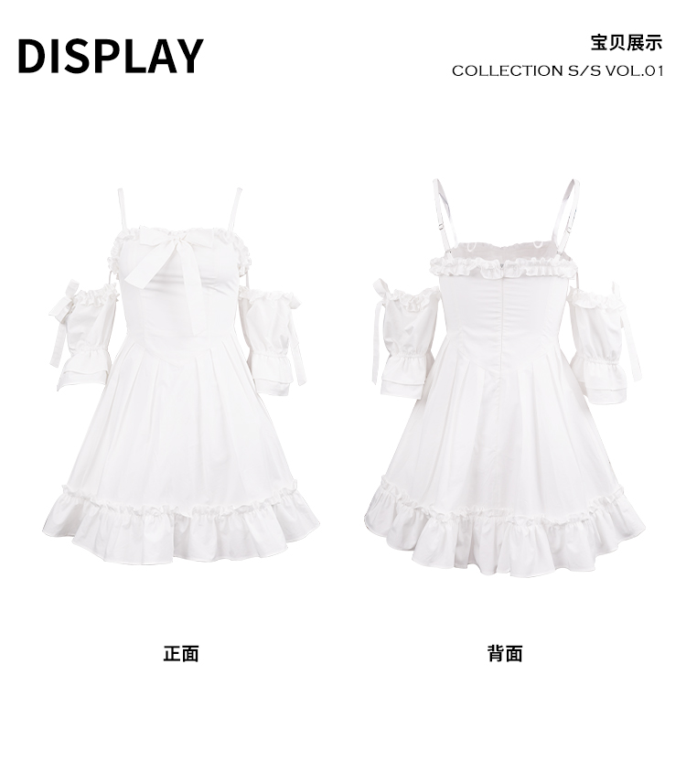 下蛋喵 2021春夏少女蝴蝶結顯瘦質感派對兩穿法式白色吊帶連衣裙