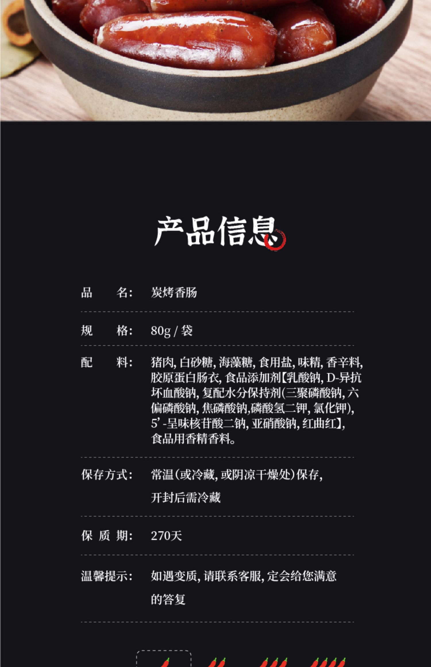 力誠碳烤小香腸休閑食品解饞火腿腸