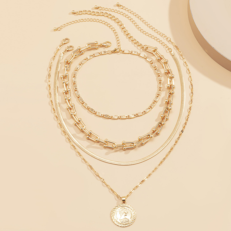 女王頭像珠子鏈三件套組合鎖骨鏈