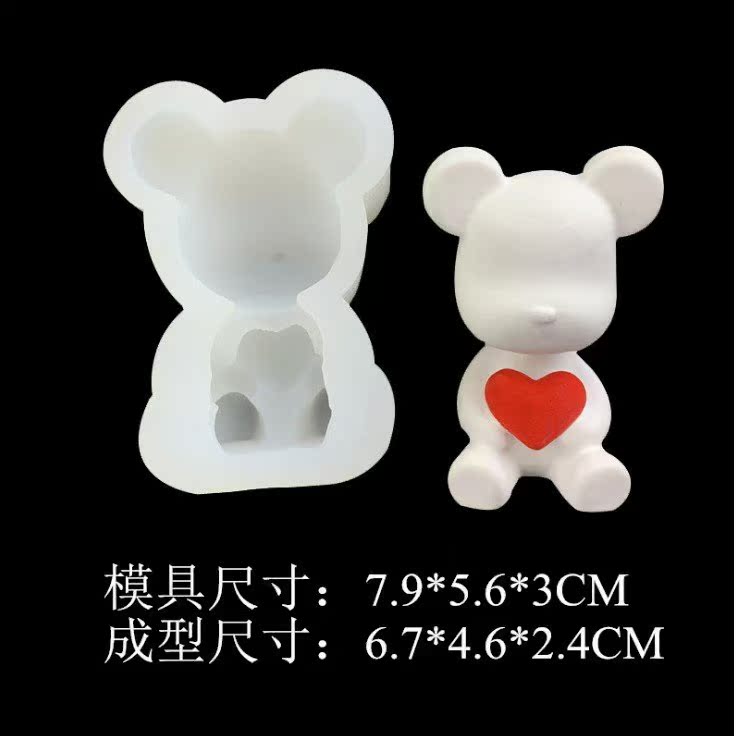 情人節愛心小熊蛋糕裝飾擺件愛心love熊硅膠模具 格子衫男女插件