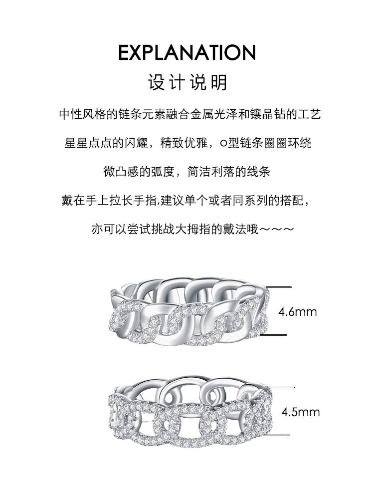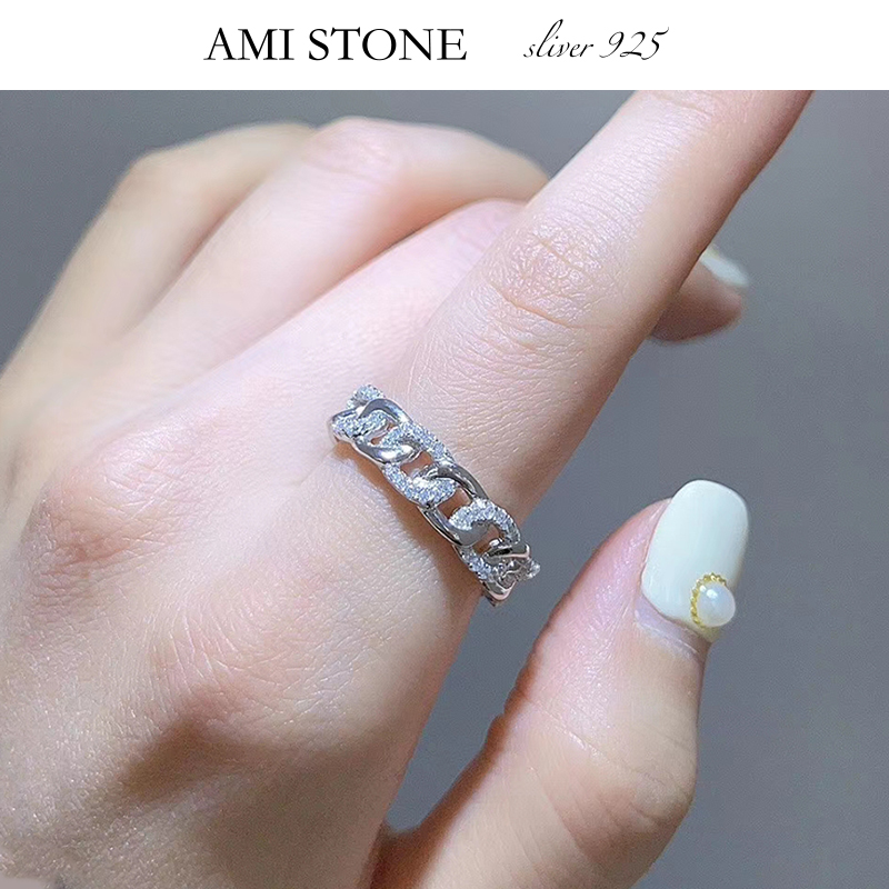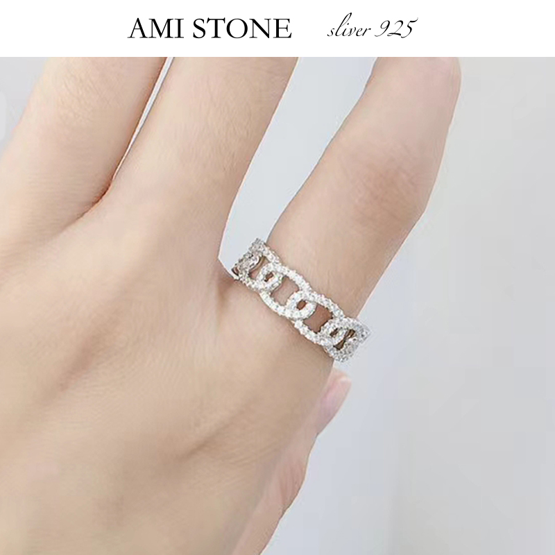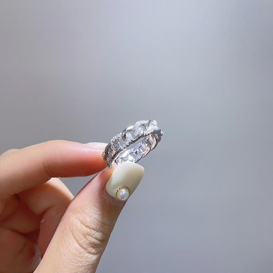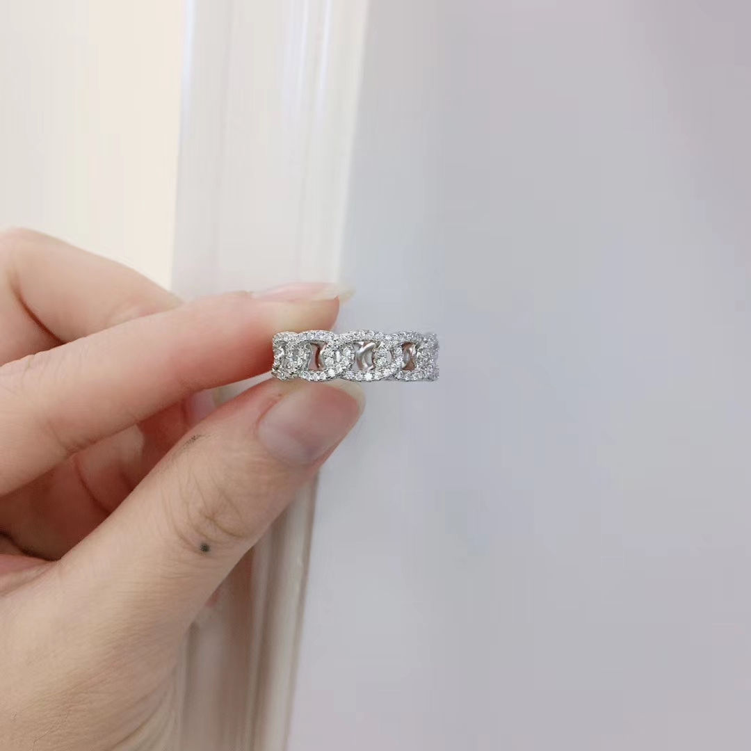 新品原創純銀O型鏈條戒指半鉆滿鑲晶鉆輕奢個性莫桑石質感精致戒