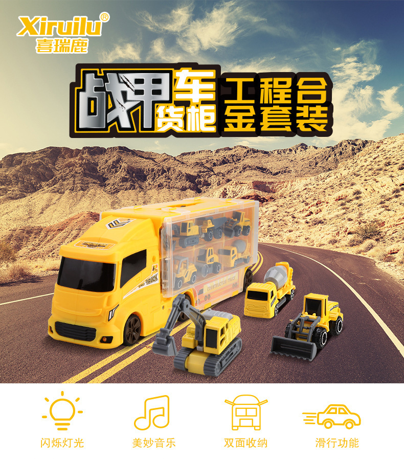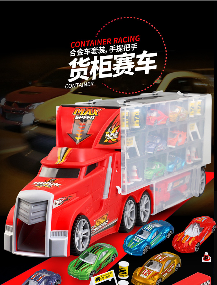 兒童玩具小汽車男孩合金收納貨柜工程車變形4卡車軌道彈射套裝3歲