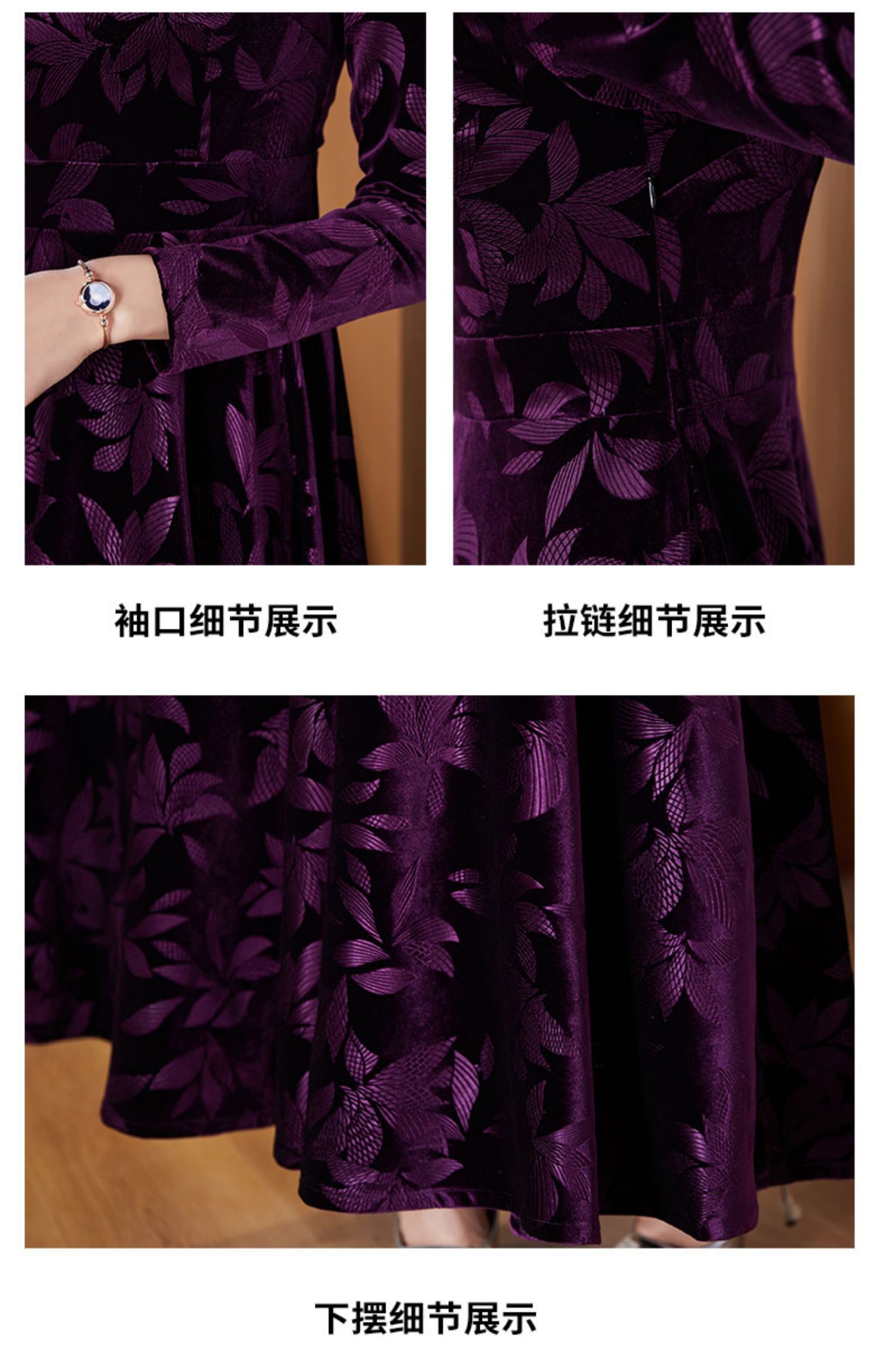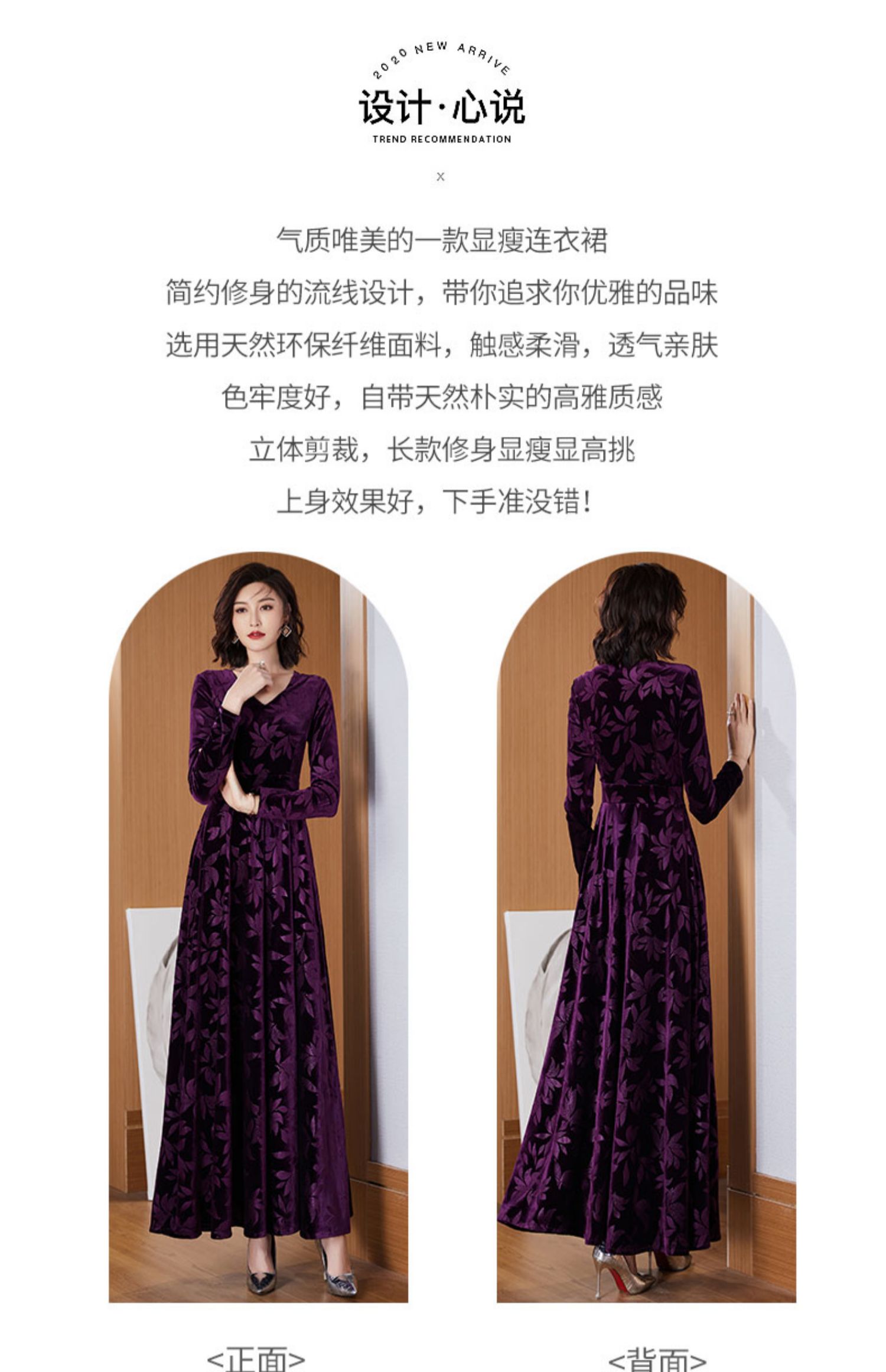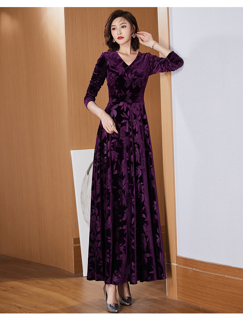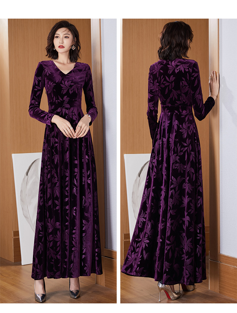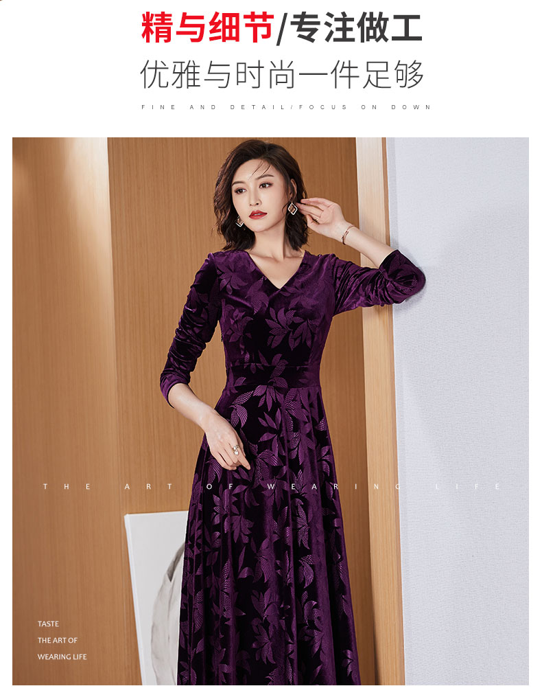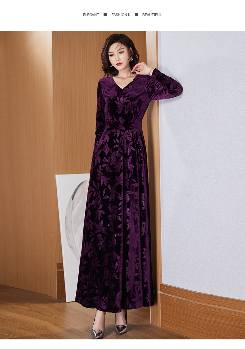 今年流行植絨提花女長款2023連衣裙