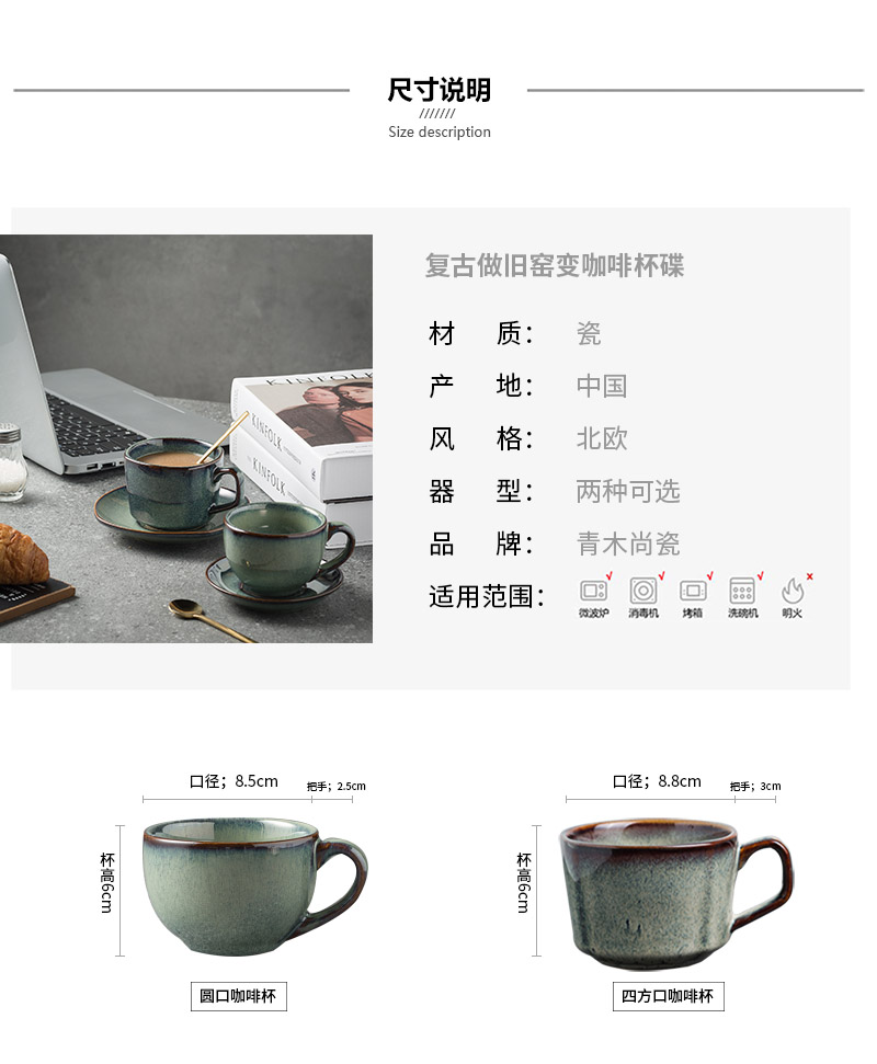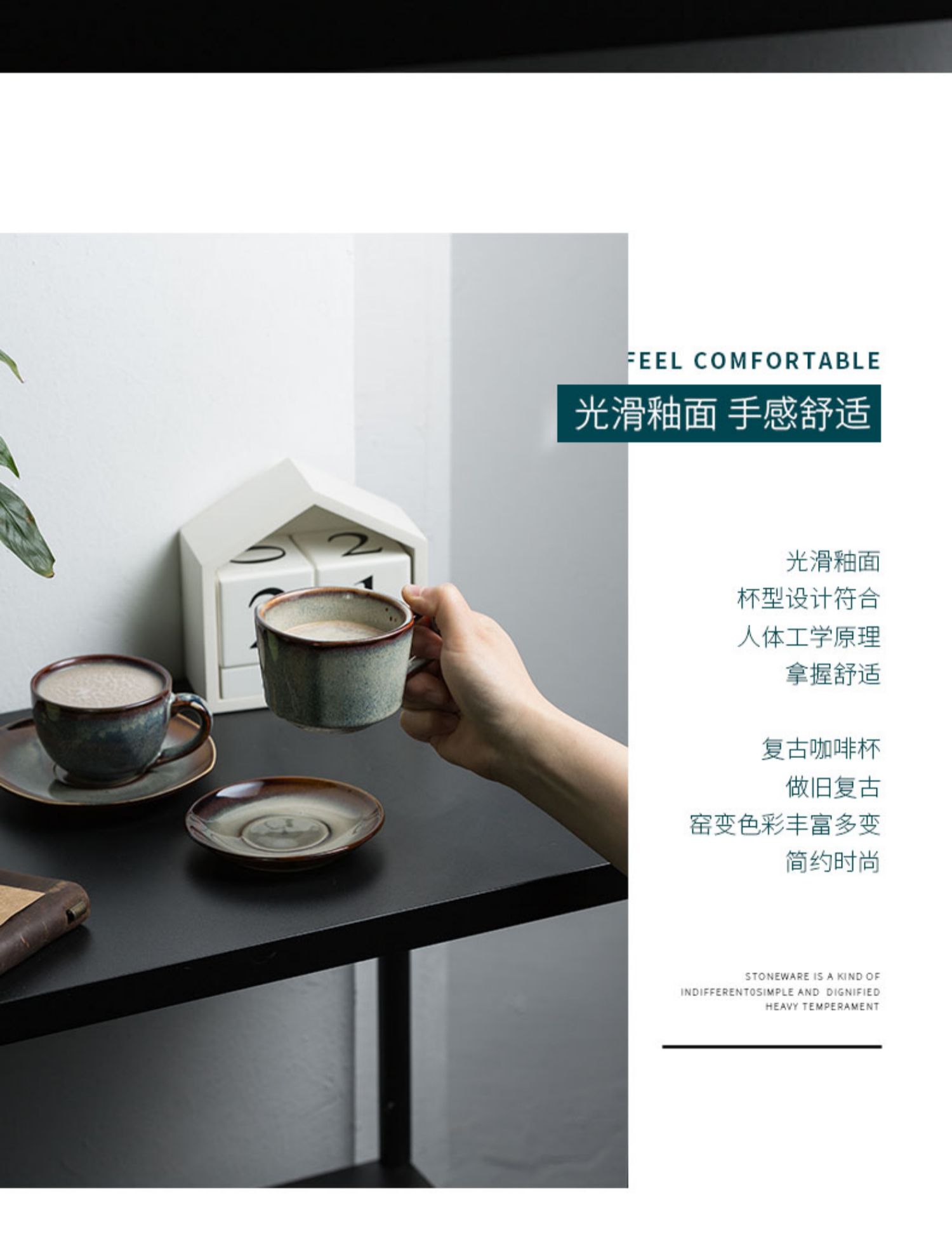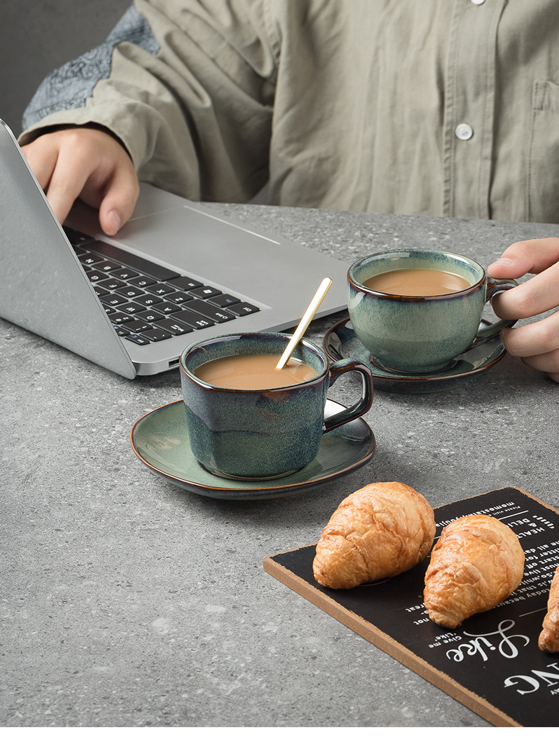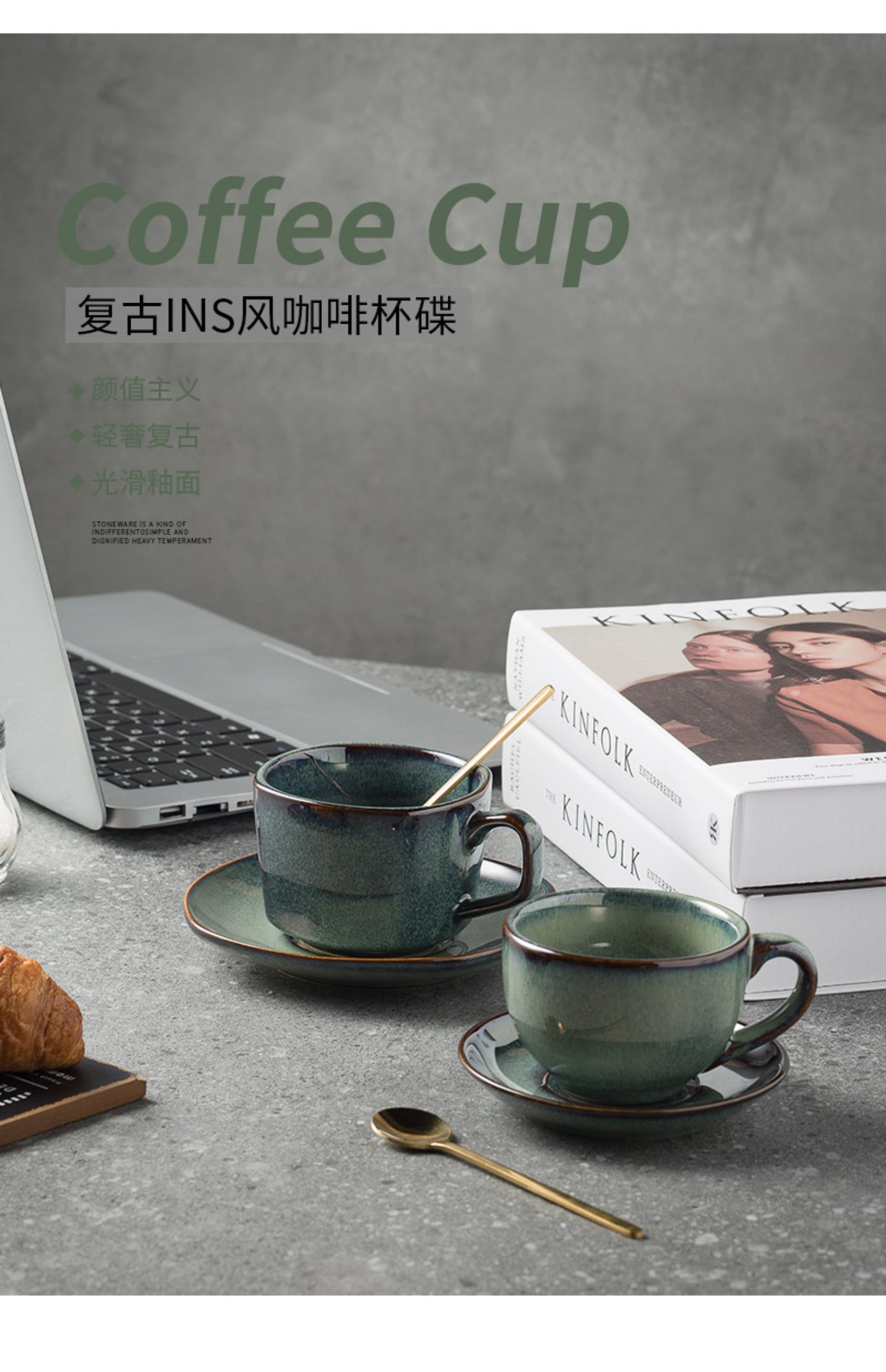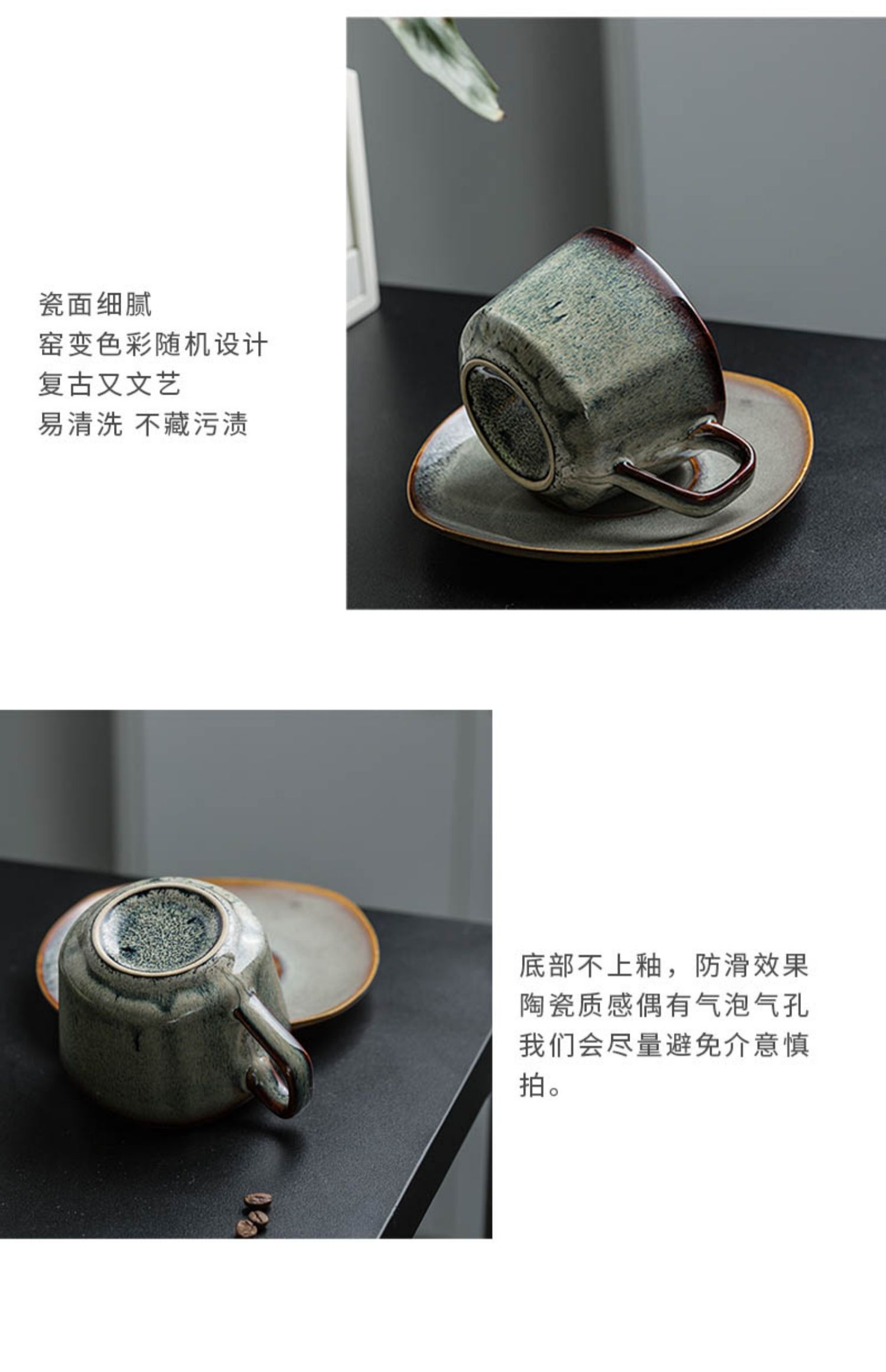 窯變咖啡杯碟套裝馬克杯復古辦公室水杯日式早餐杯陶瓷喝牛奶杯子