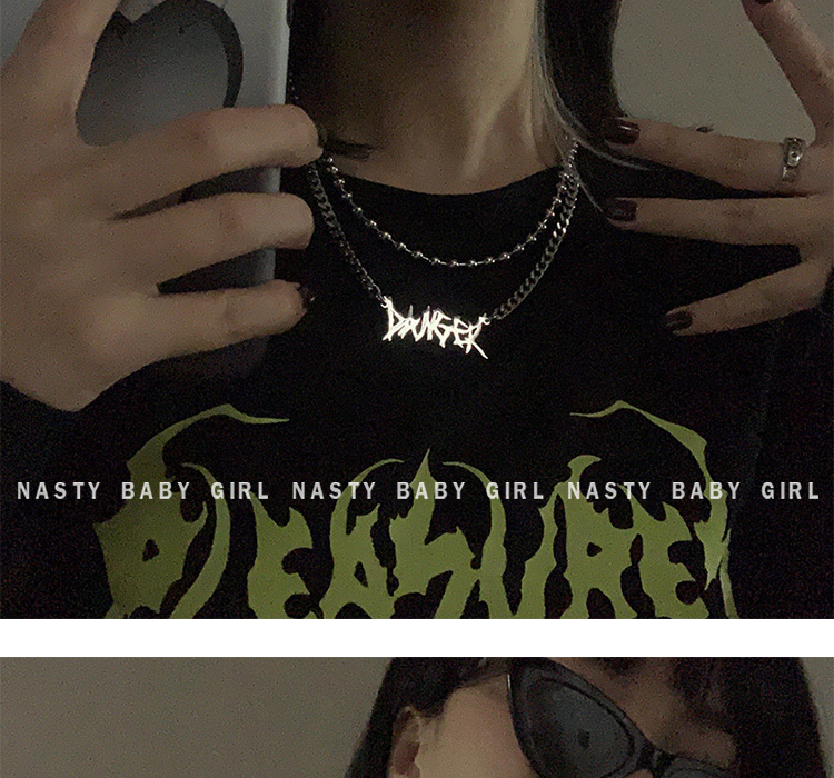 NASTYBABY 鈦鋼不掉色哥特字母項鏈ins嘻哈風潮辣妹頸鏈鎖骨鏈女