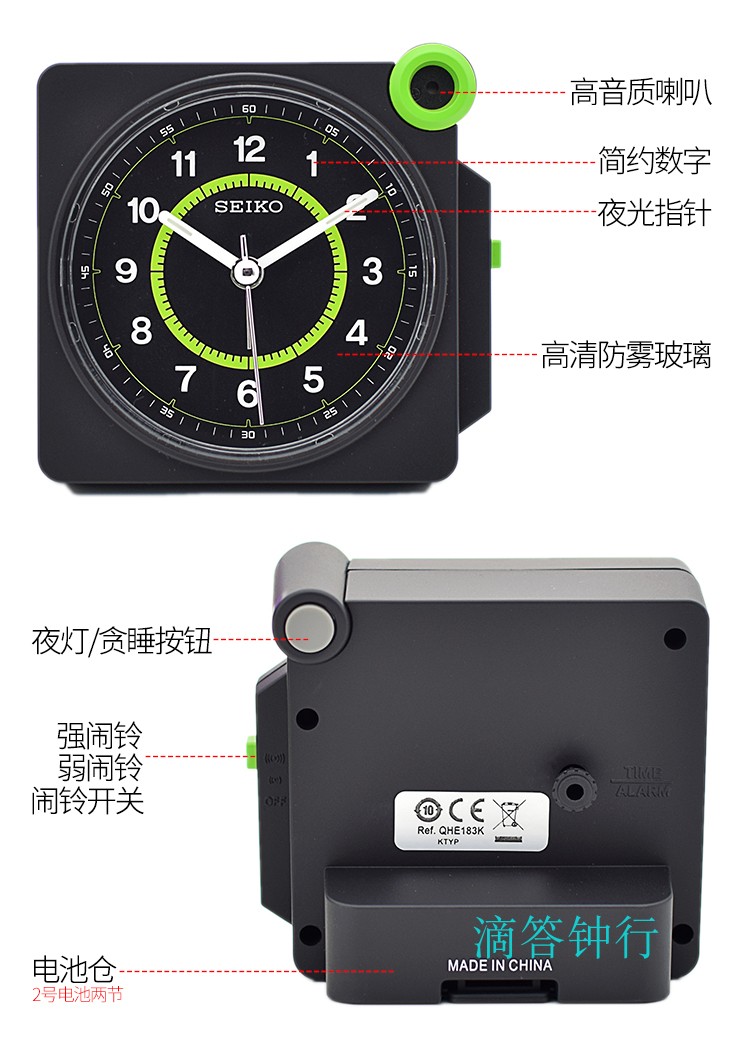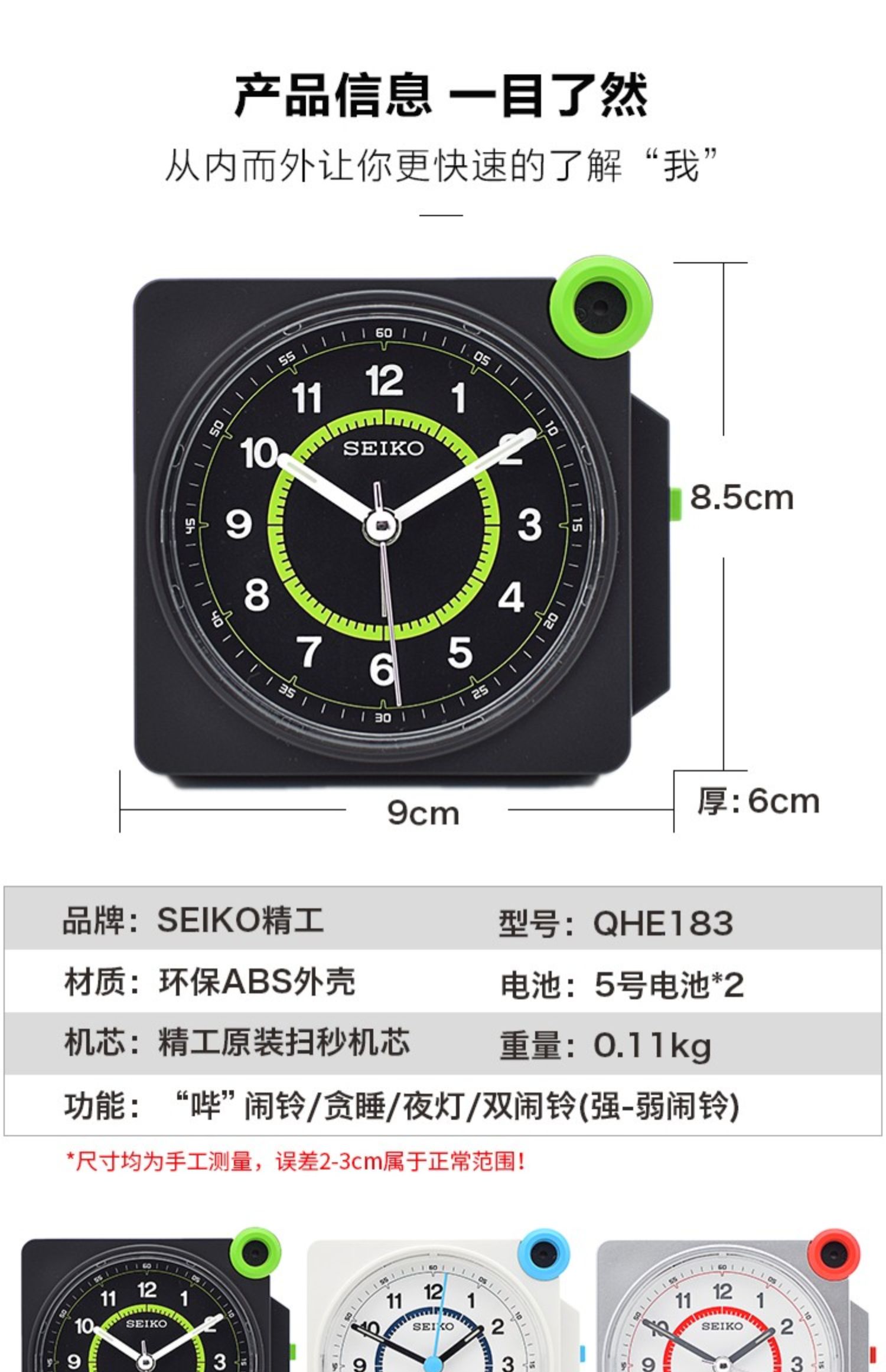 日本精工時鐘臥室床頭創意時尚貪睡夜燈夜光靜音學生鬧鐘QHE183W