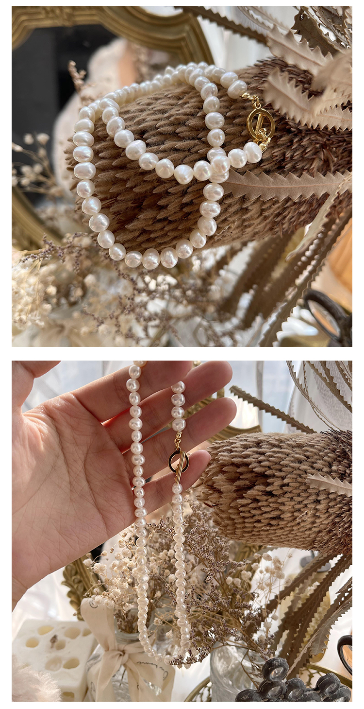ZING天然巴洛克珍珠項鏈鎖骨鏈女OT扣choker復古氣質簡約百搭頸鏈