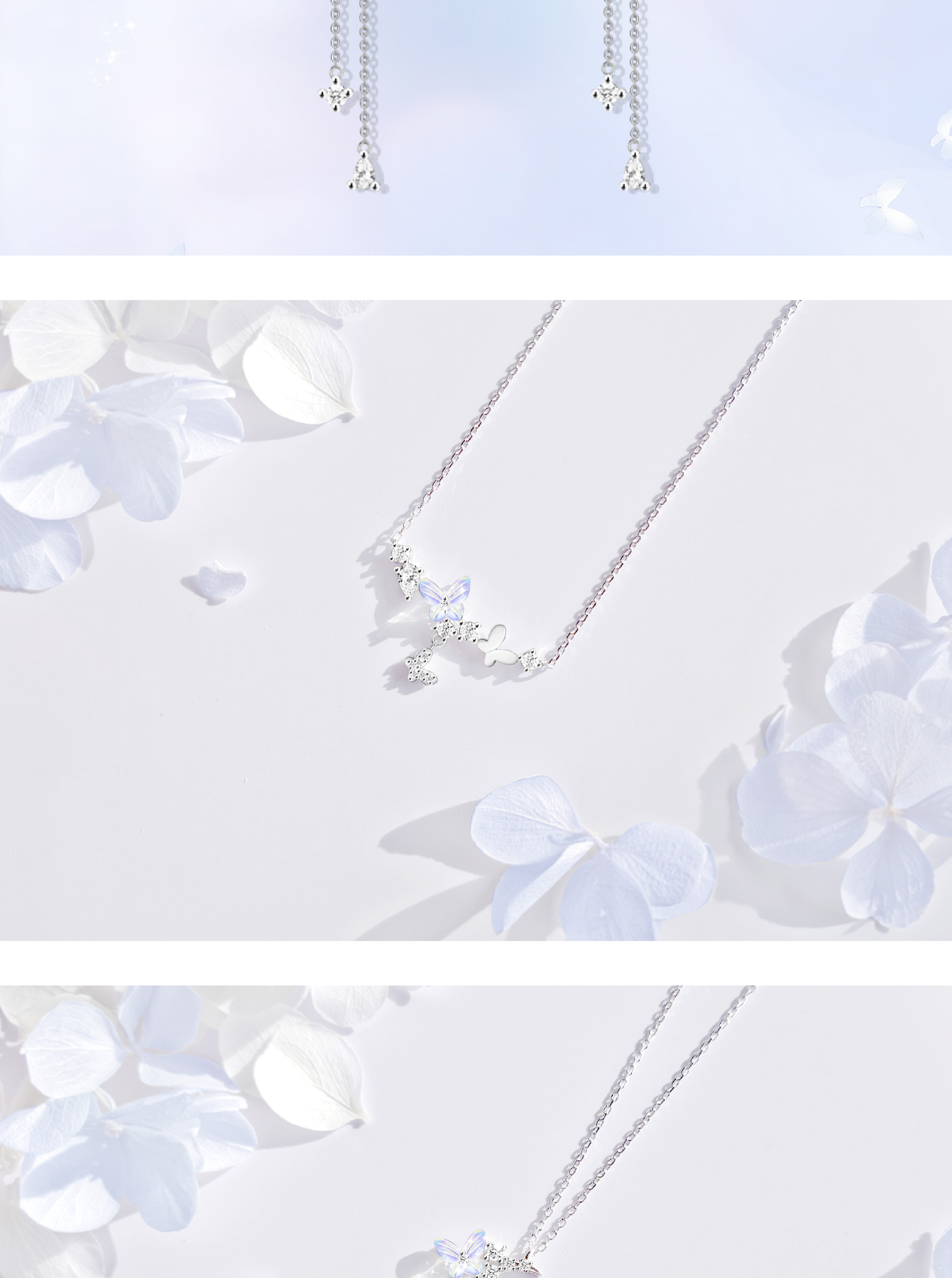 月亮純銀項鏈女輕奢小眾設計感閨蜜三人蝴蝶鎖骨鏈生日禮物送女友