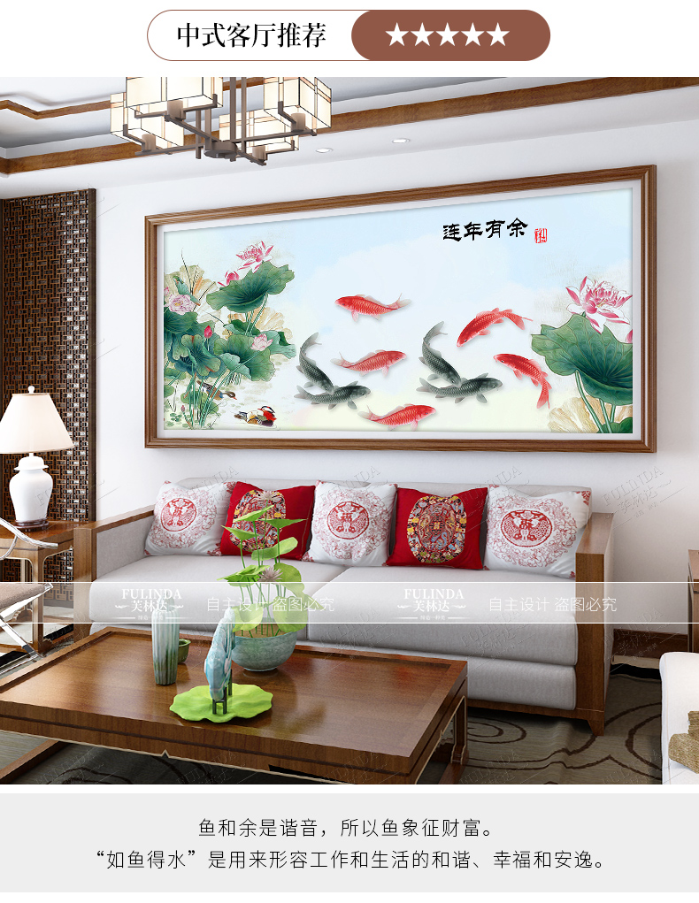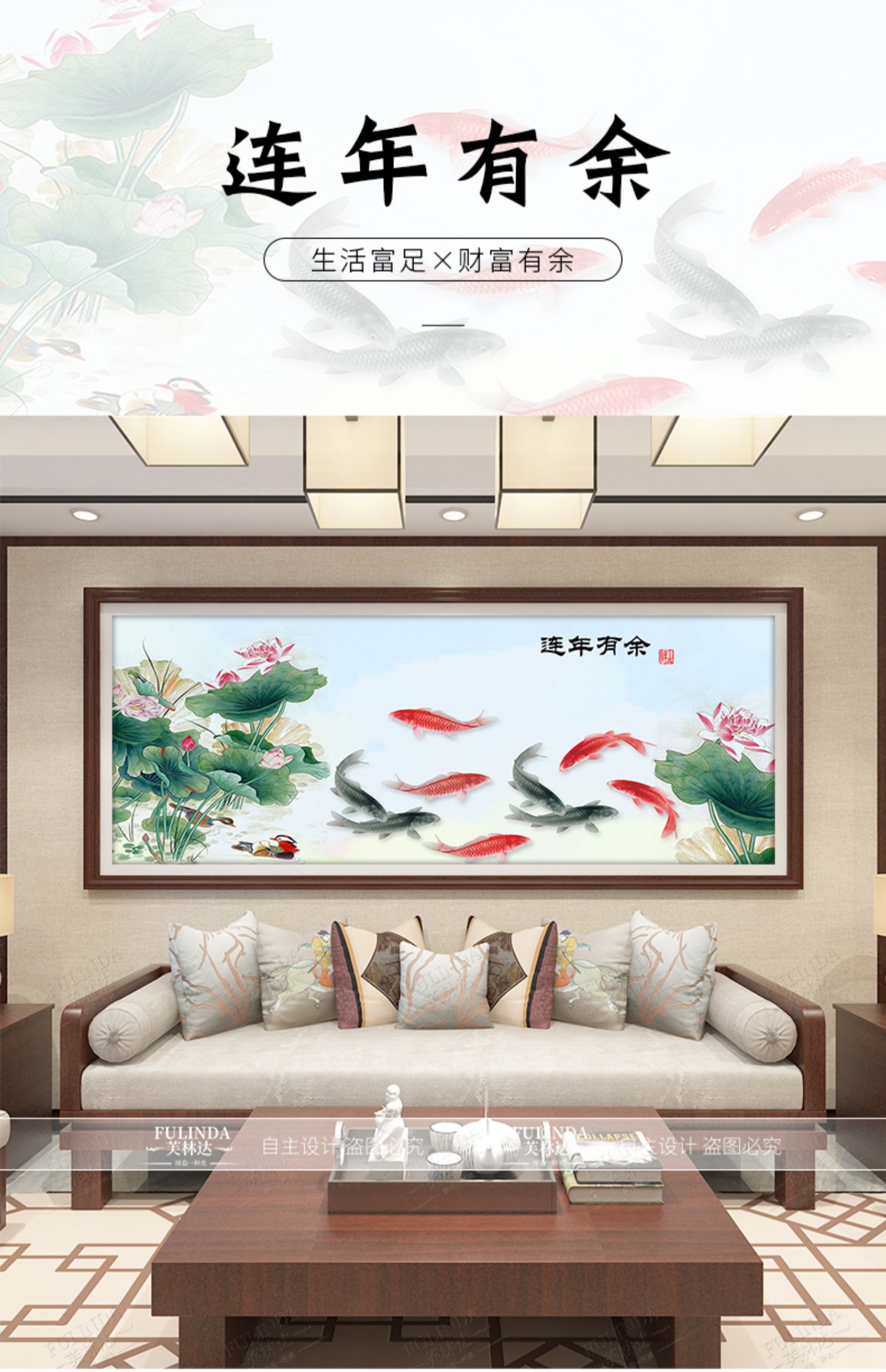 年年有余十字繡2023年新款線繡客廳荷花九魚圖大氣2022魚圖中國風