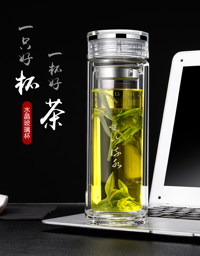 男大容量雙層加厚耐熱水杯泡茶杯子