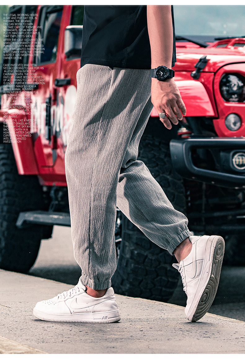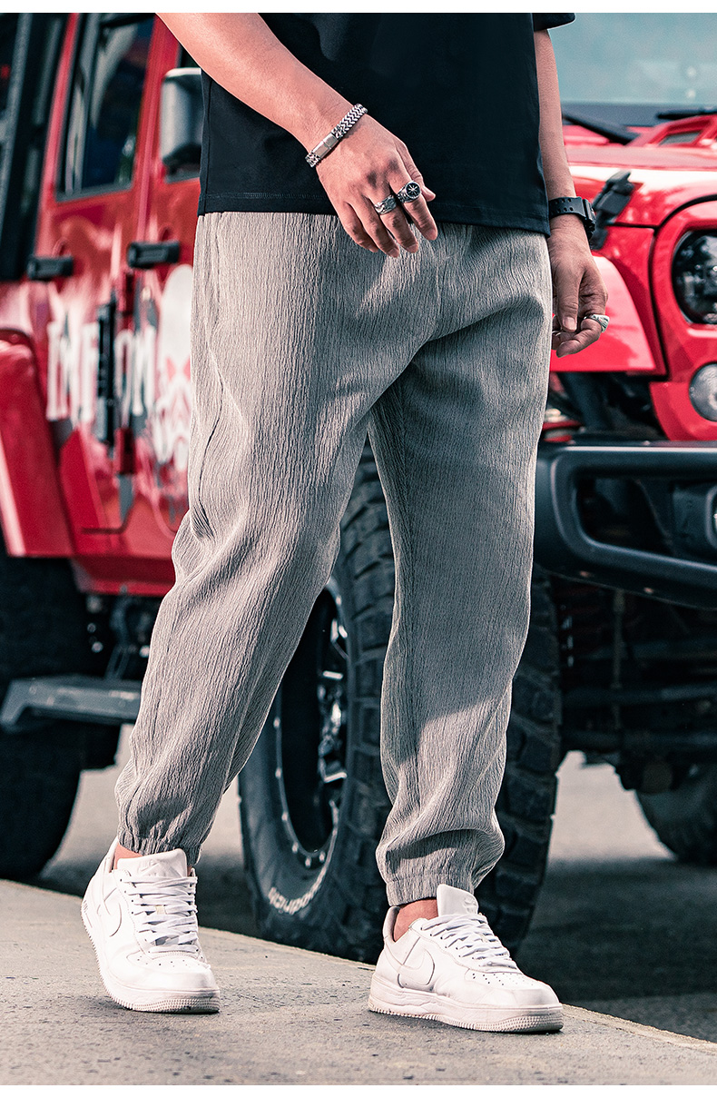 GxxH夏大碼男裝褲子冰絲寬松肥佬潮牌加肥加大胖子休閑束腳九分褲