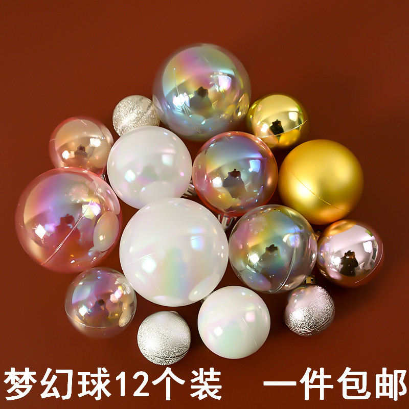 包郵網紅炫彩幻彩泡泡七彩透明球生日蛋糕裝飾擺件圣誕球12個裝
