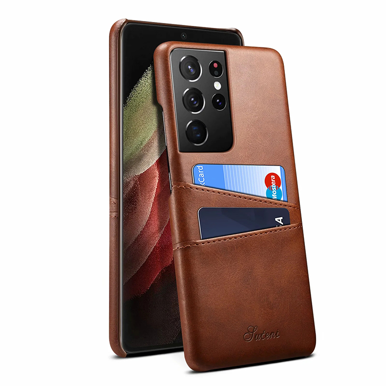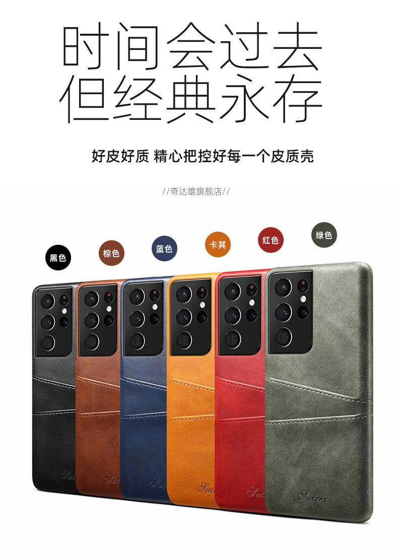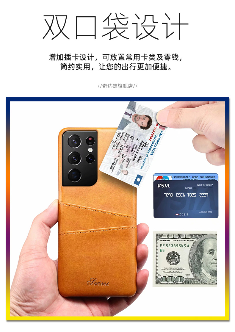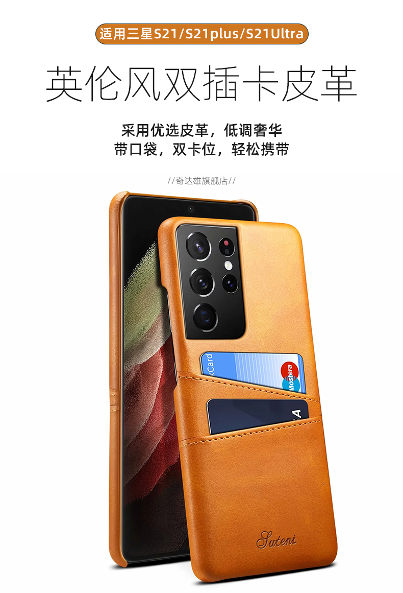 三星S21Ultra小牛紋雙插卡手機后殼皮質S21plus適用于GalaxyS21+無邊框十創意網紅奢華防摔女男士高檔保護套