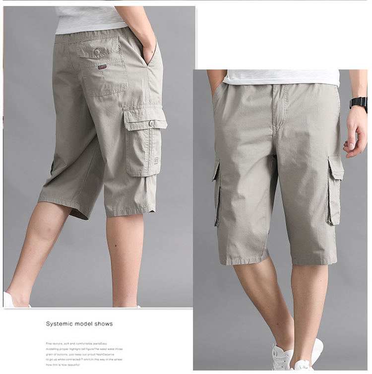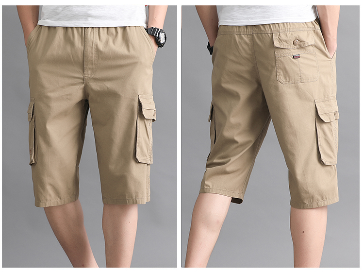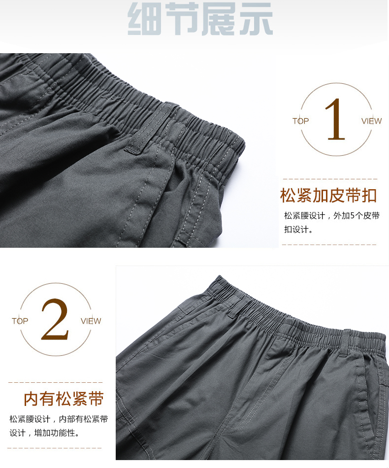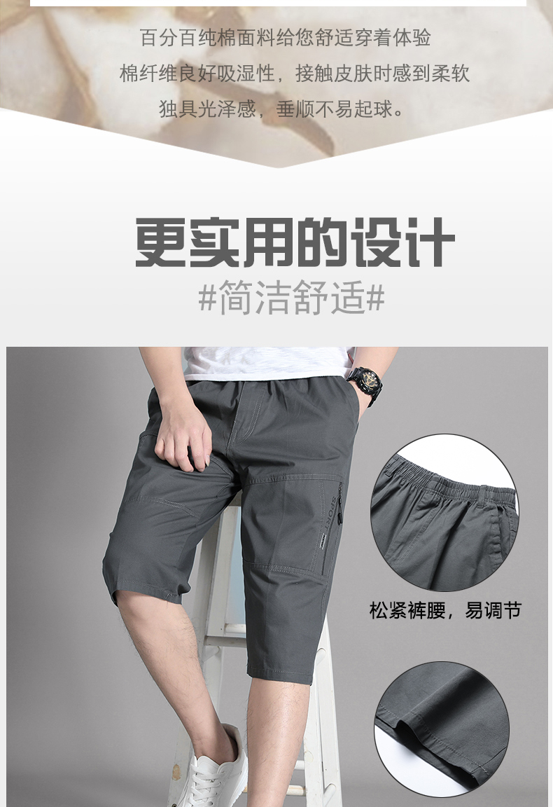 中老年男七分褲父親薄款休閑短褲松緊純棉寬松中褲爸爸沙灘7分褲
