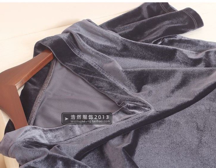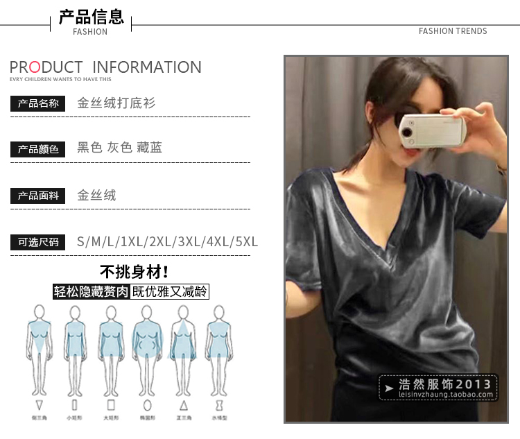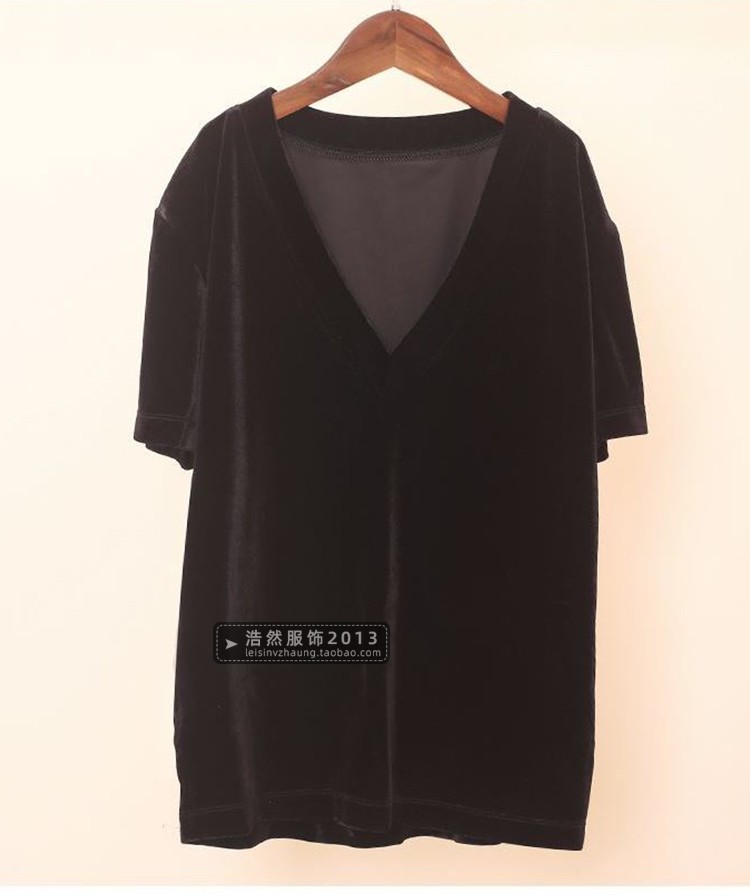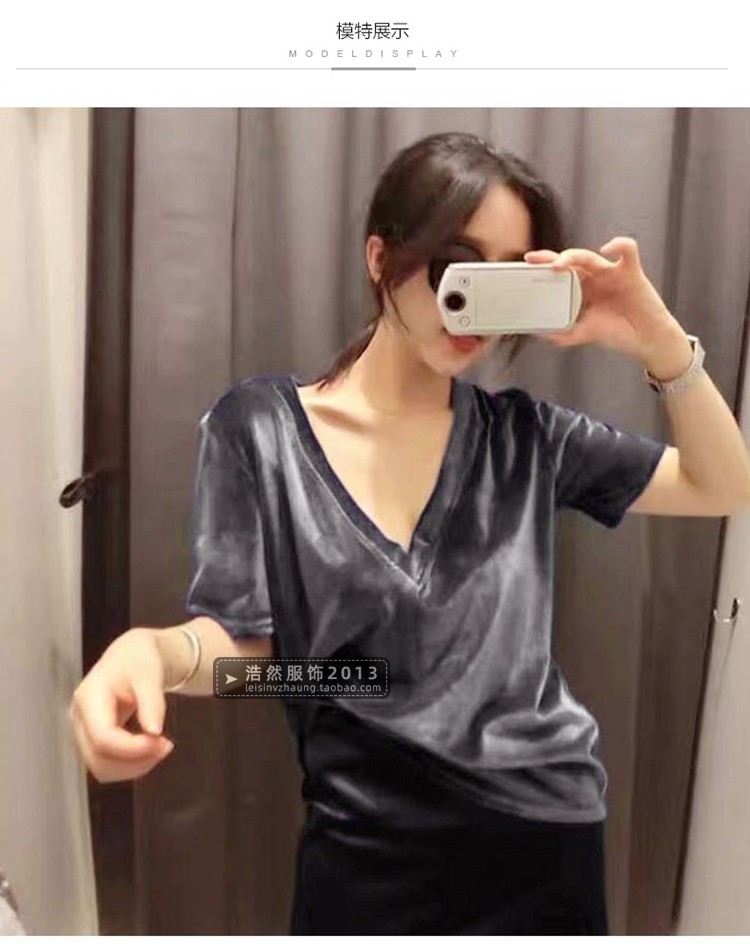 中袖v領金絲絨春夏新款休閑t恤衫