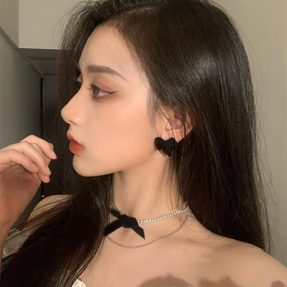 ins黑色絲絨蝴蝶結新款設計感雙層項鏈網紅歐美鎖骨鏈女百搭閨蜜