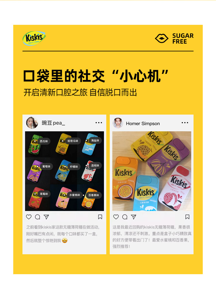 KisKis無糖薄荷糖熱情果百香果味壓片糖果清新口氣小零食約會糖