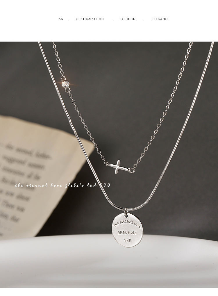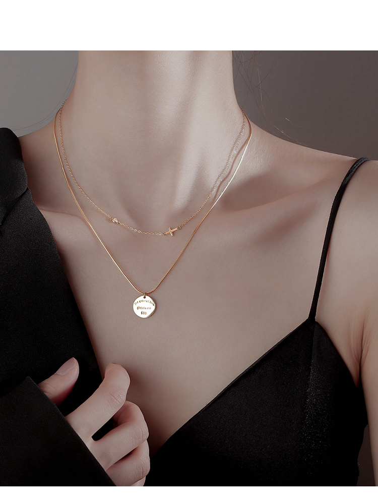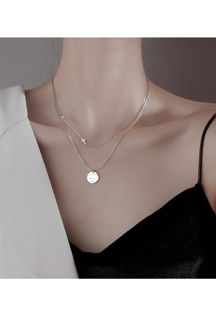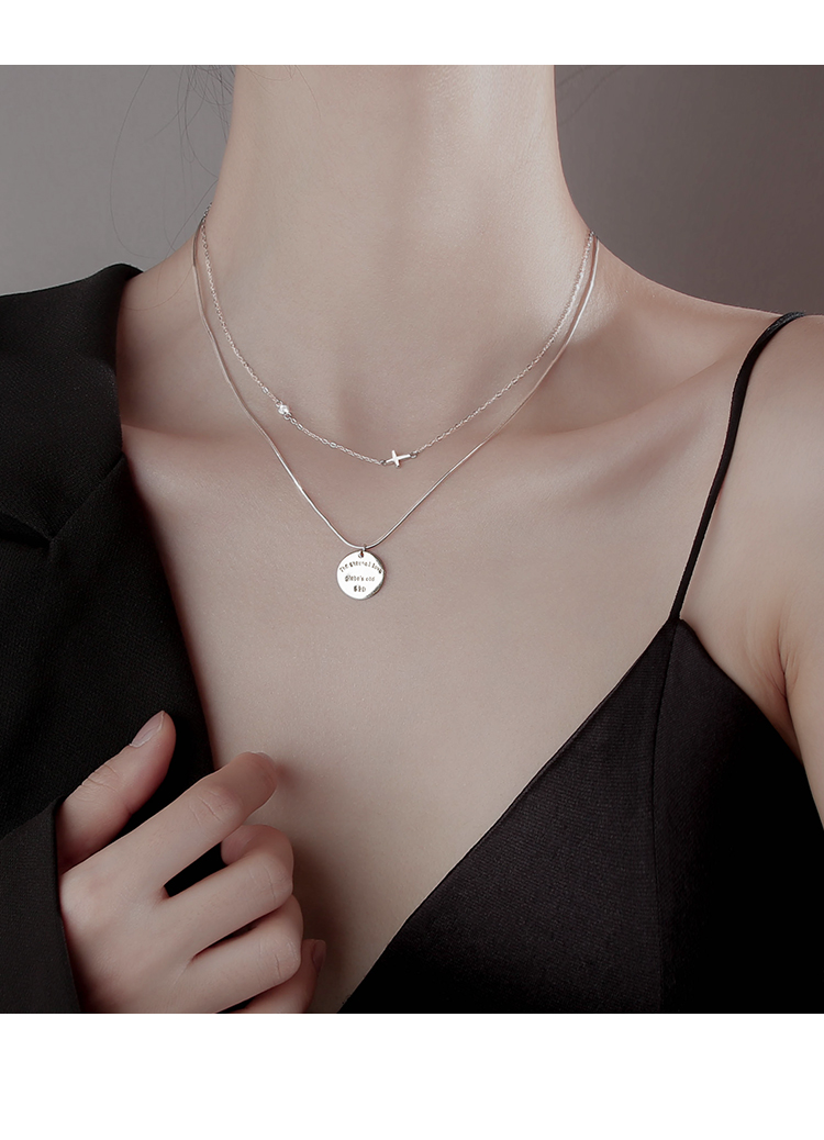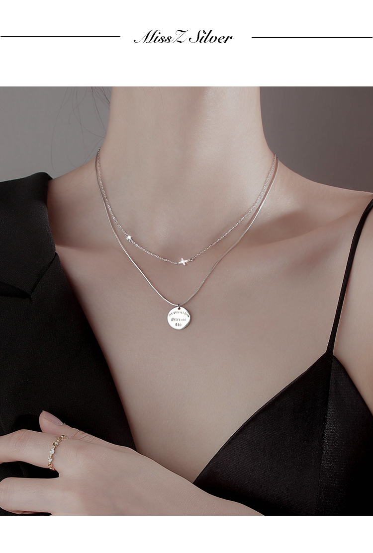 Z小姐 雙層圓牌項鏈女夏純銀項鏈2023年新款女高級設計感小眾吊墜