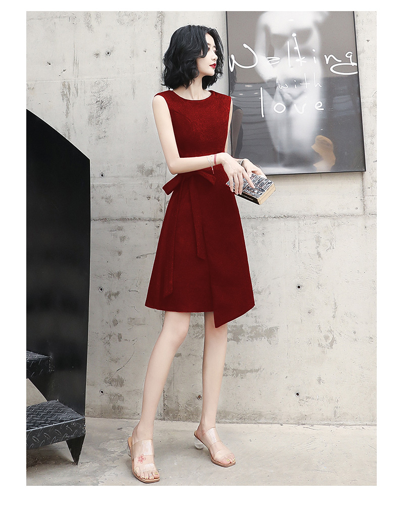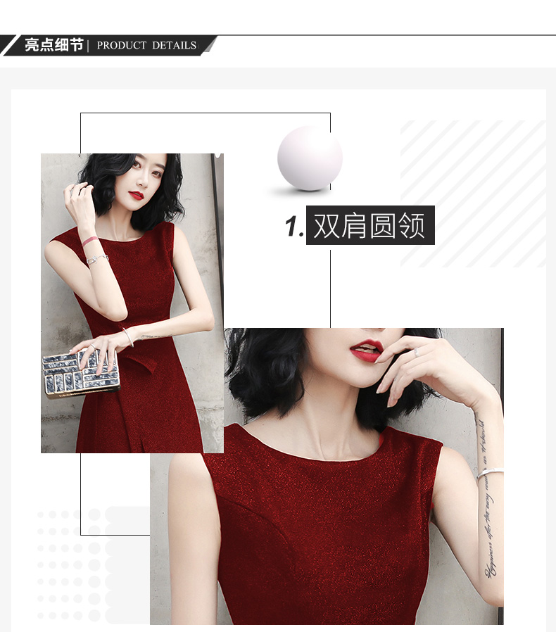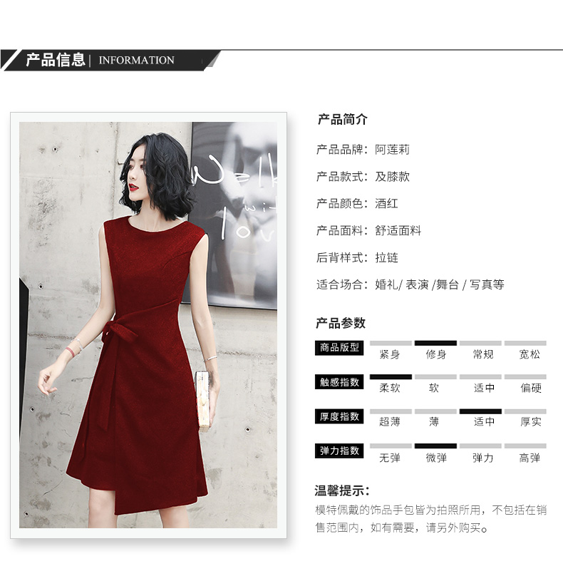 新娘2022新款酒紅色訂婚禮服連衣裙