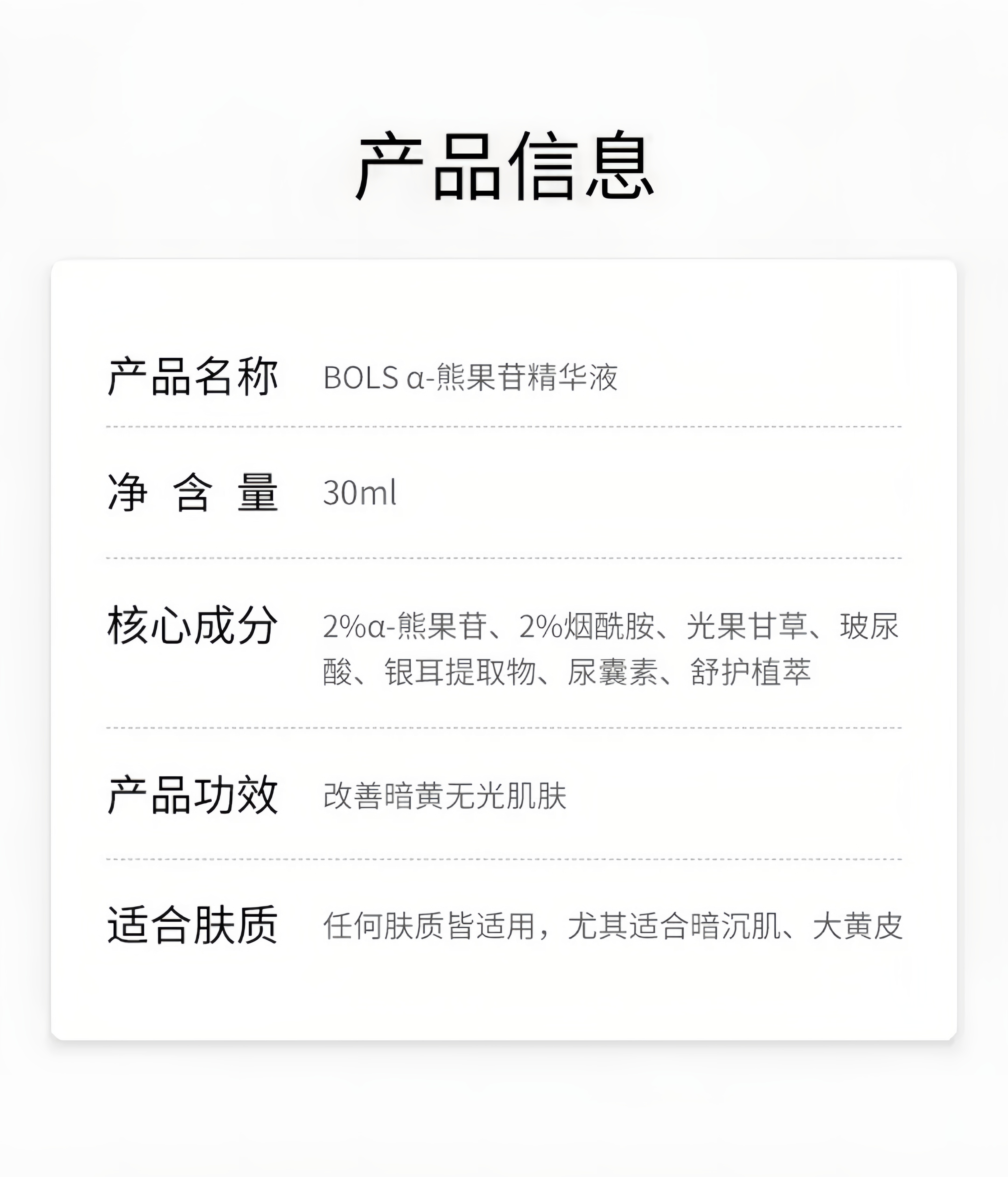 BOLS精華液葆麗匙小仙瓶熊果苷面部精華補水褪黑亮膚去暗黃煙酰胺