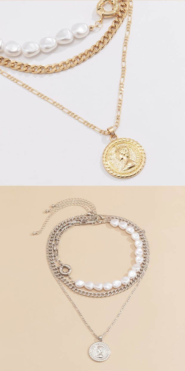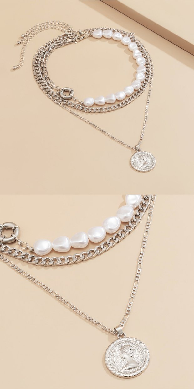 精品熱賣包郵 氣質小香風異形仿珍珠項鏈女 復古簡約人像吊墜頸鏈