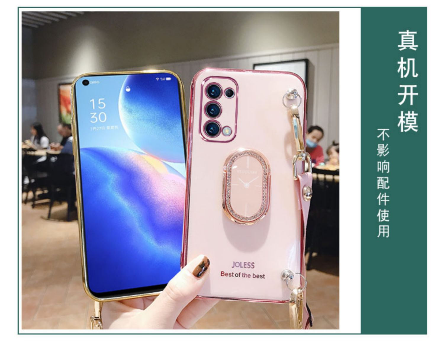 opporeno5手機殼2021新款軟硅膠電鍍reno5pro帶指環扣支架reno5鏡頭全包保護攝像頭reno5女帶掛繩斜挎可背帶