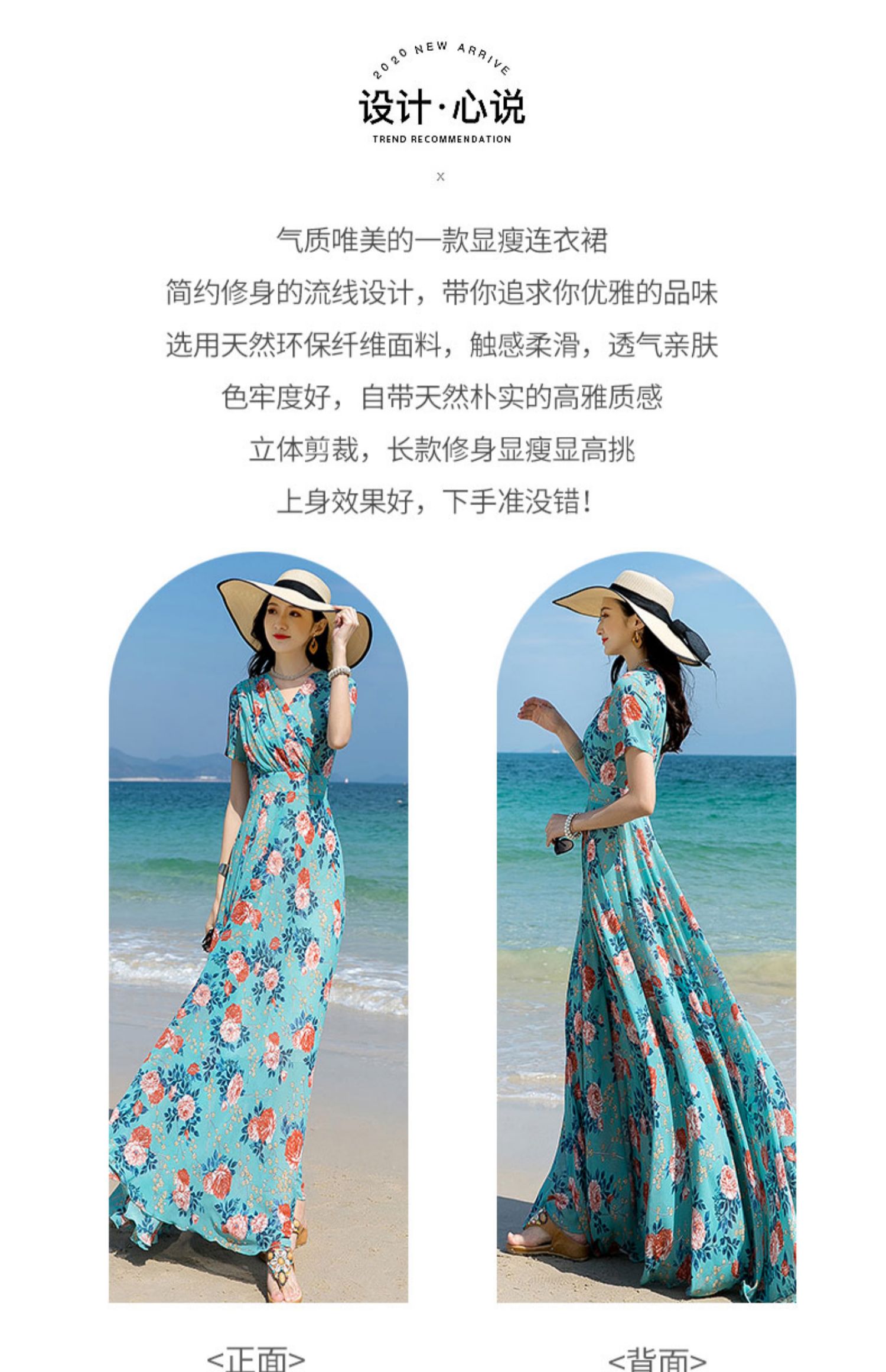 愛杜長款連衣裙大擺簡約收腰沙灘裙
