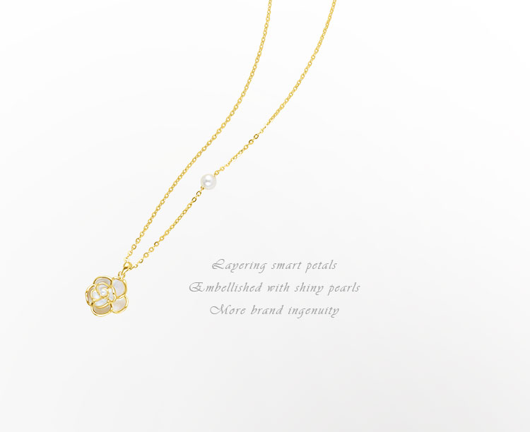 ajidou山茶花系列雙層疊戴花卉項鏈