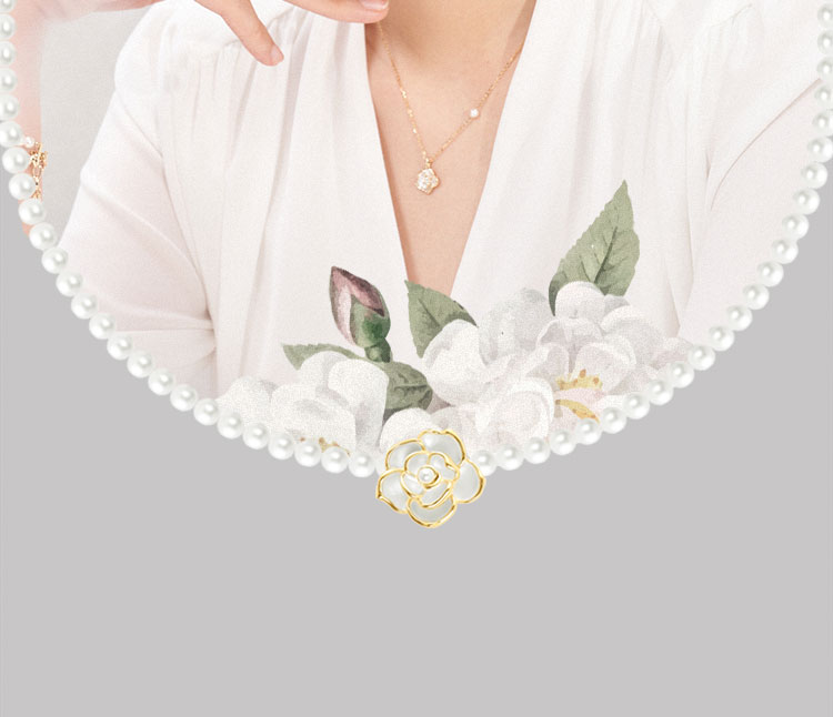 阿吉豆山茶花系列仿珍珠項鏈高級優雅鎖骨鏈女