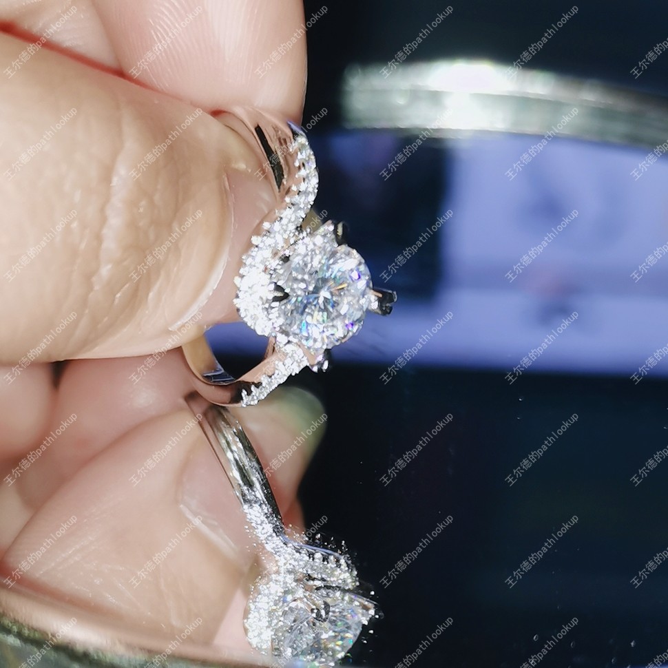 S925銀18K白金高碳鉆石扭臂四爪愛心戒指女 仿真鉆石婚戒節日禮物