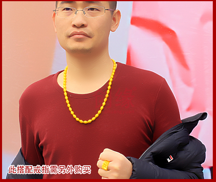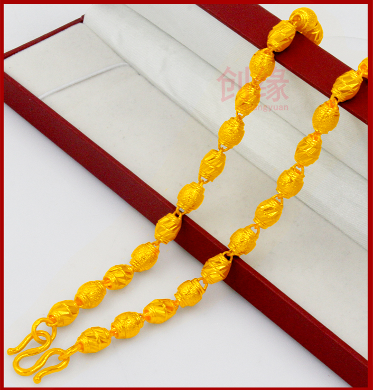 創緣鍍黃金項鏈粗大氣豆豆珠鏈子鍍沙金項鏈男士啤酒桶款婚慶道具