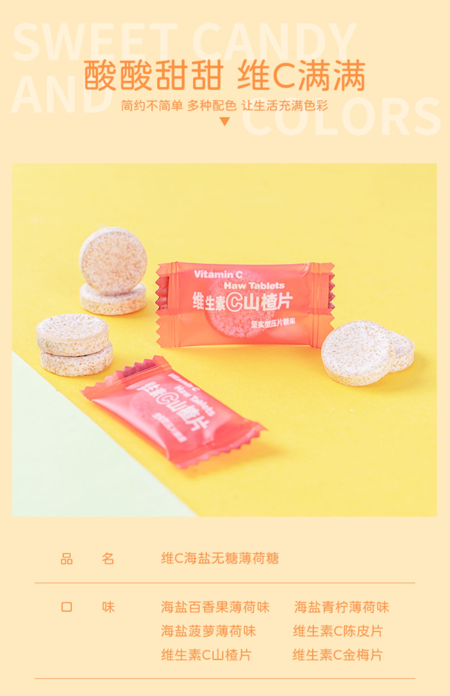 維c陳皮含片海鹽無糖薄荷糖味糖果