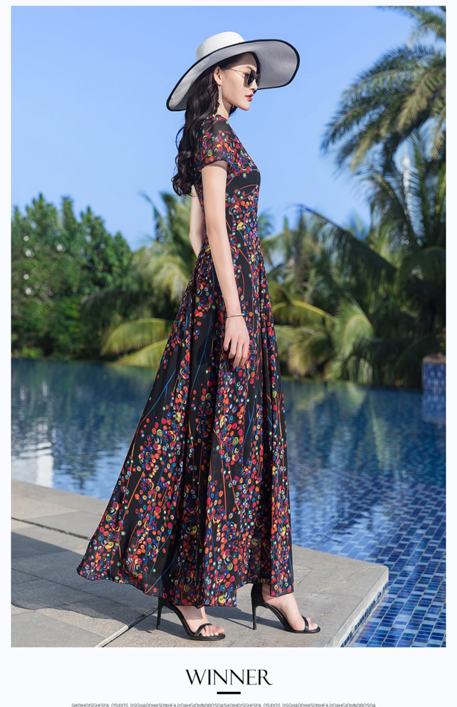 碎花連衣裙女超長款2023夏季新款法式雪紡收腰顯瘦拖地長裙到腳踝