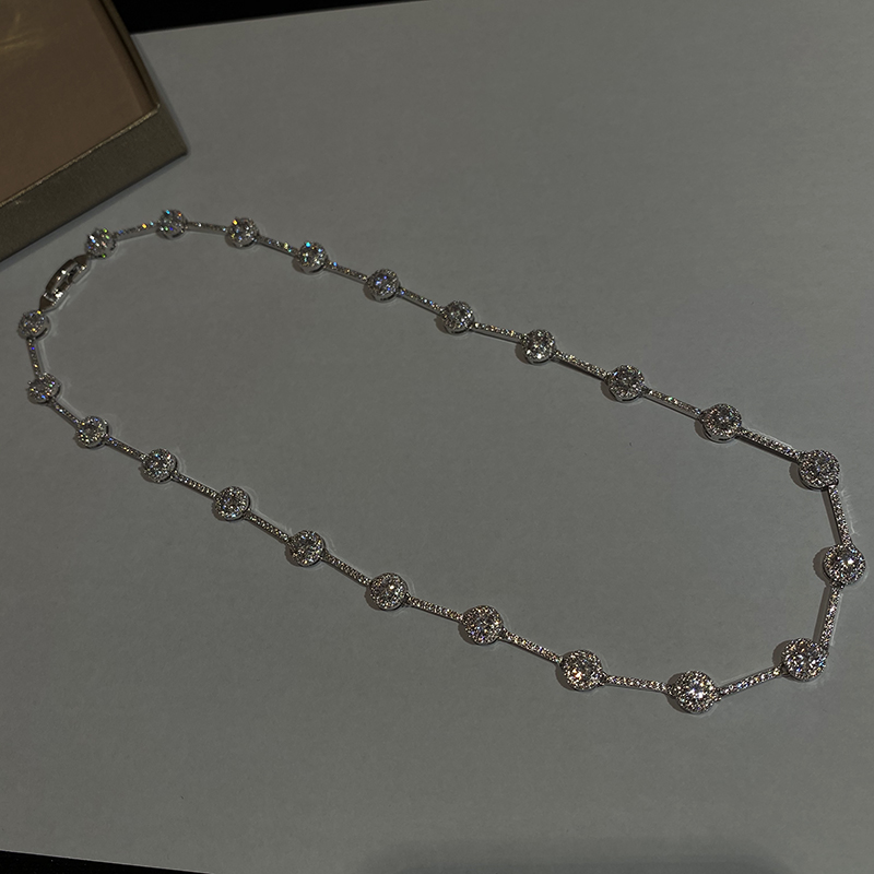 打結大圓鉆項鏈高街百搭復古鍍18k白金奢華禮服鎖骨簡約晚宴配飾