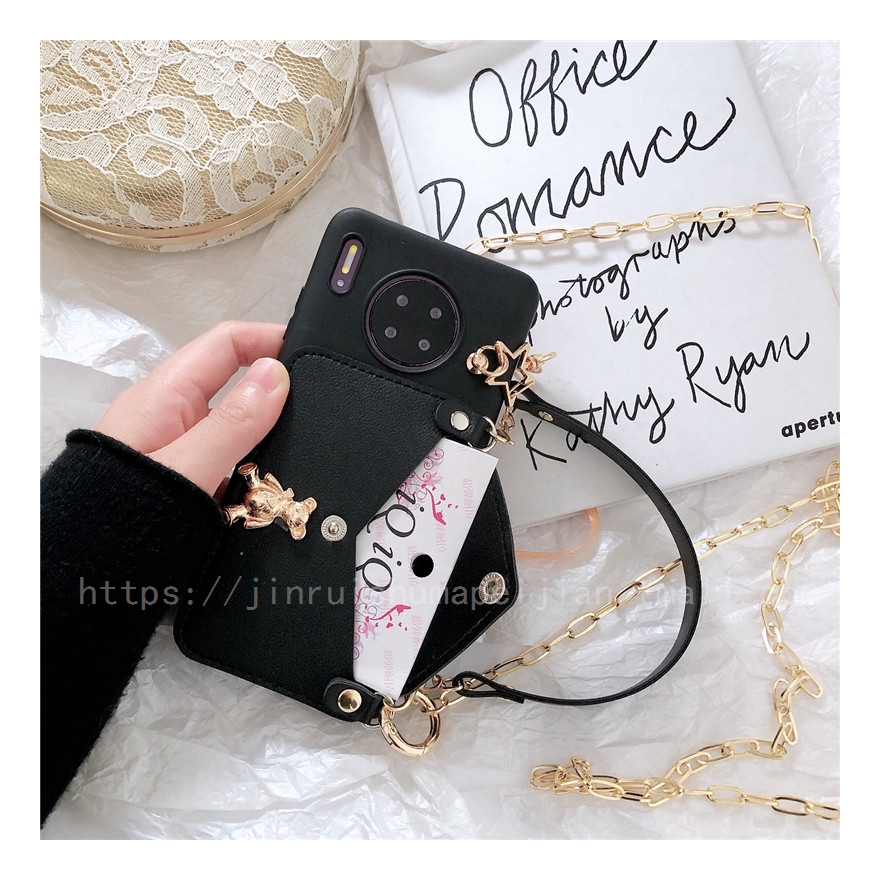 可愛小熊華為榮耀50手機殼nova9/8/7/6/5/4插卡零錢包榮耀20/X10保護套9X全包防摔mate40斜跨背帶P30pro潮P40