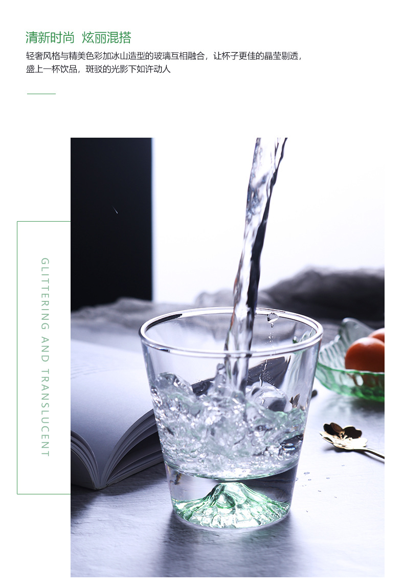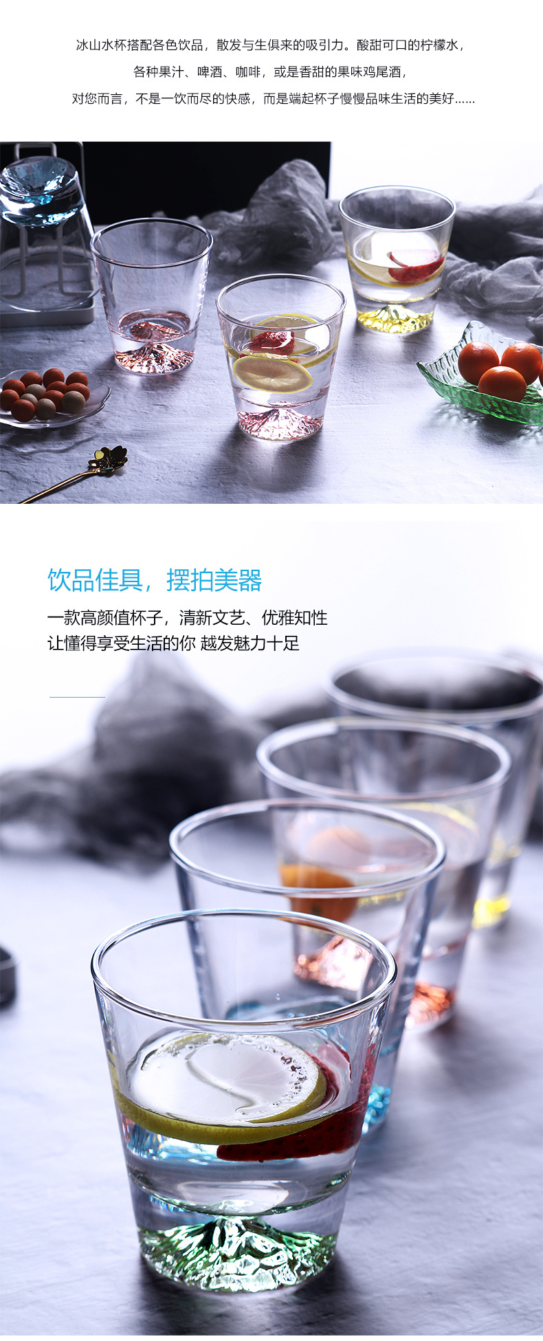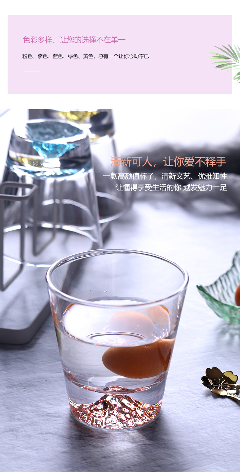 日式櫻花富士山杯ins高顏值家用水杯玻璃杯茶杯冰山杯威士忌酒杯
