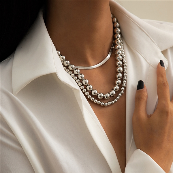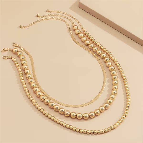 ccb珠子扁蛇鏈三件套組合鎖骨鏈