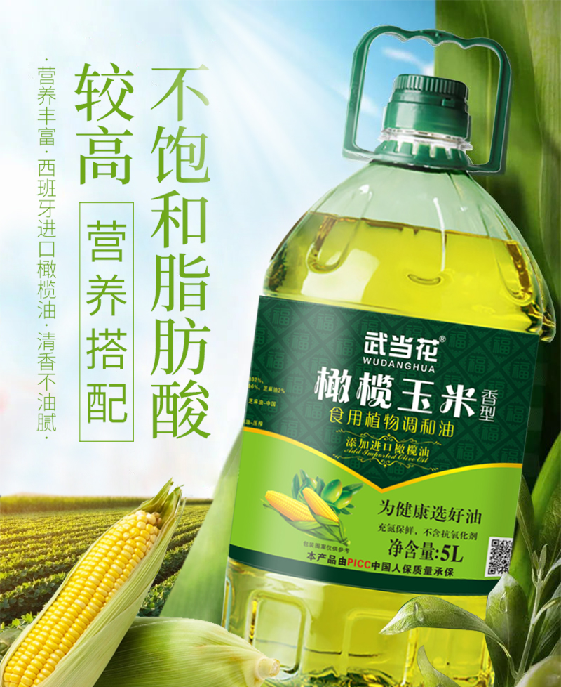 武當花橄欖玉米香型食用植物調和油植物油食用油輕油煙5L家用