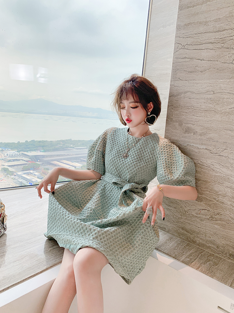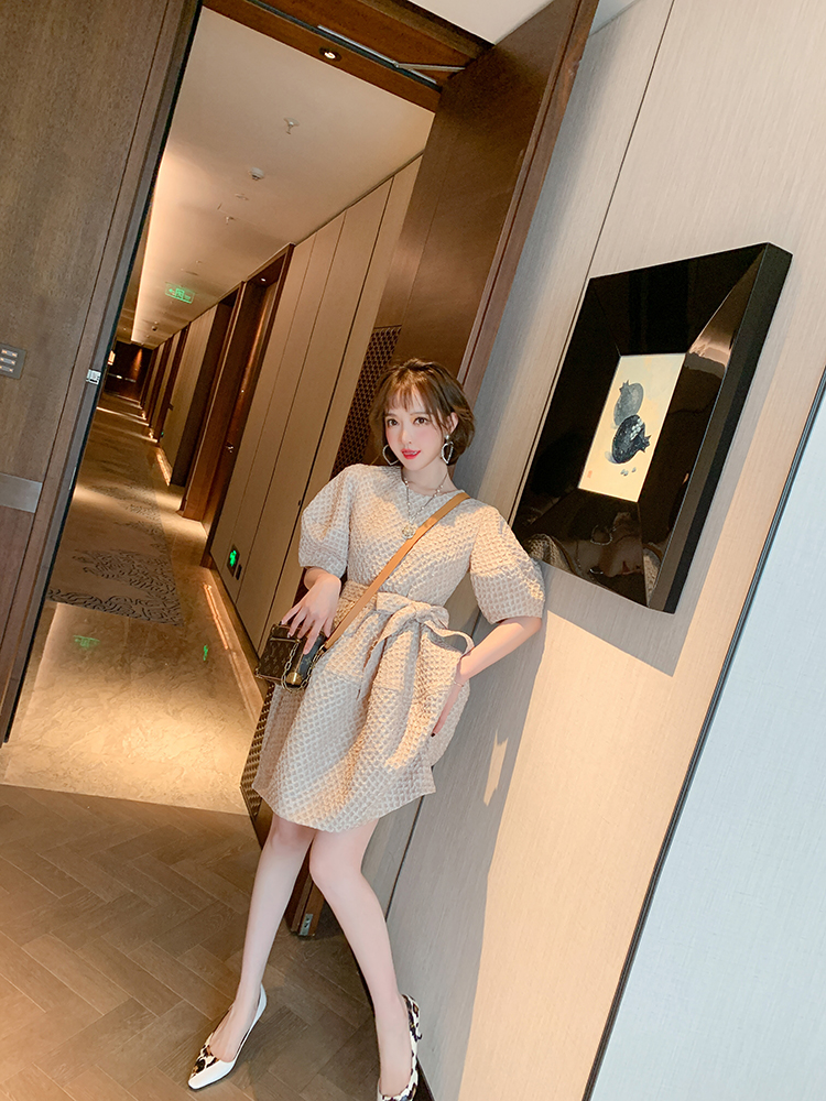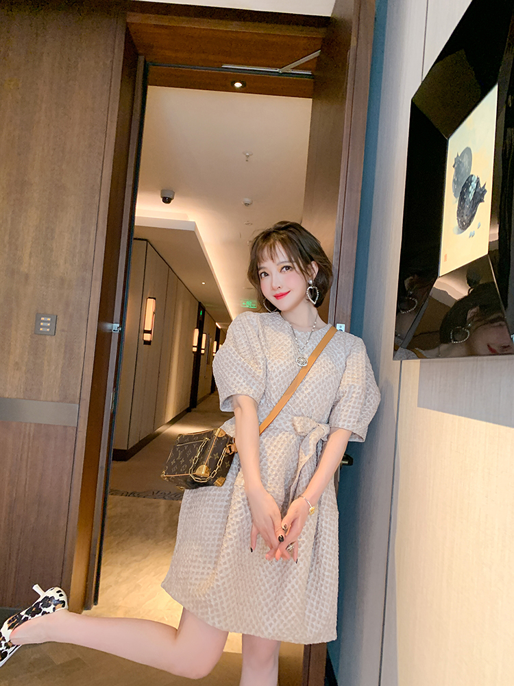 裙長不過膝,正好遮住大腿肉肉,顯瘦顯腿長。