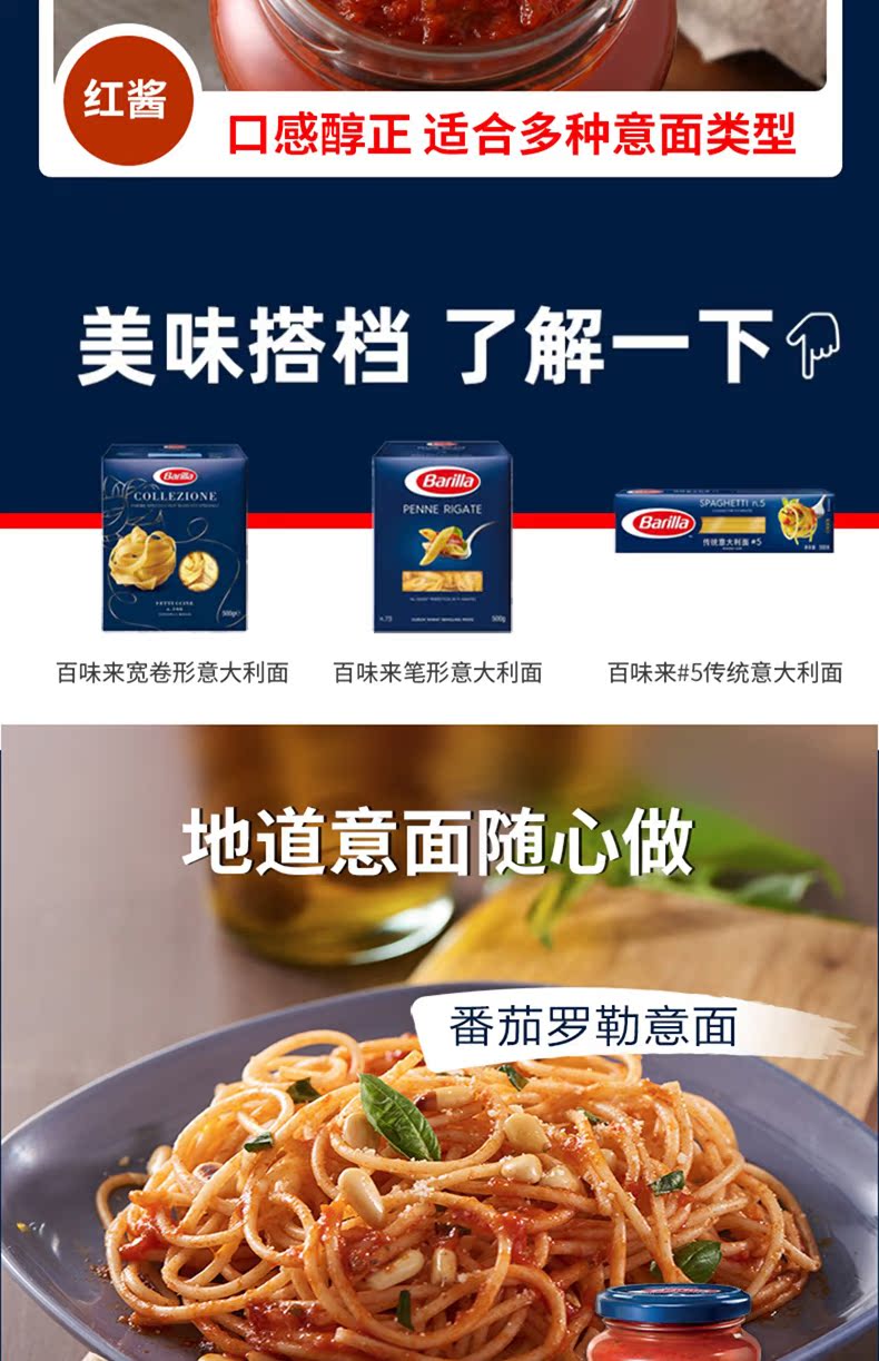 barilla意大利250g*5袋意粉醬