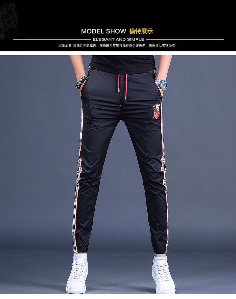 潮牌男褲休閑男士夏季修身冰絲褲子