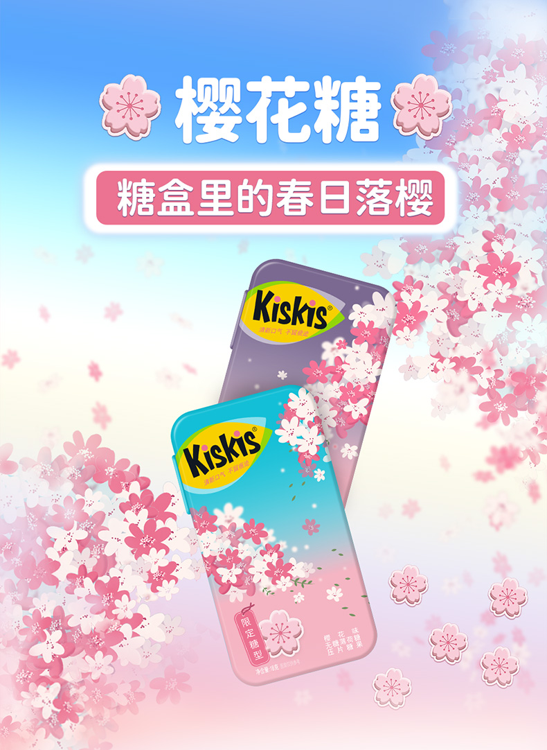 櫻花口味系列KisKis酷滋無糖薄荷糖口香糖抖音糖果小零食