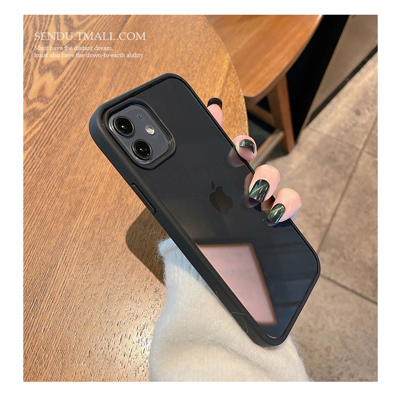 【厚薄適中,手感一流】簡約高級透明亞克力適用iphone15pro手機殼蘋果14proMax撞色13新款防摔12保護套男女