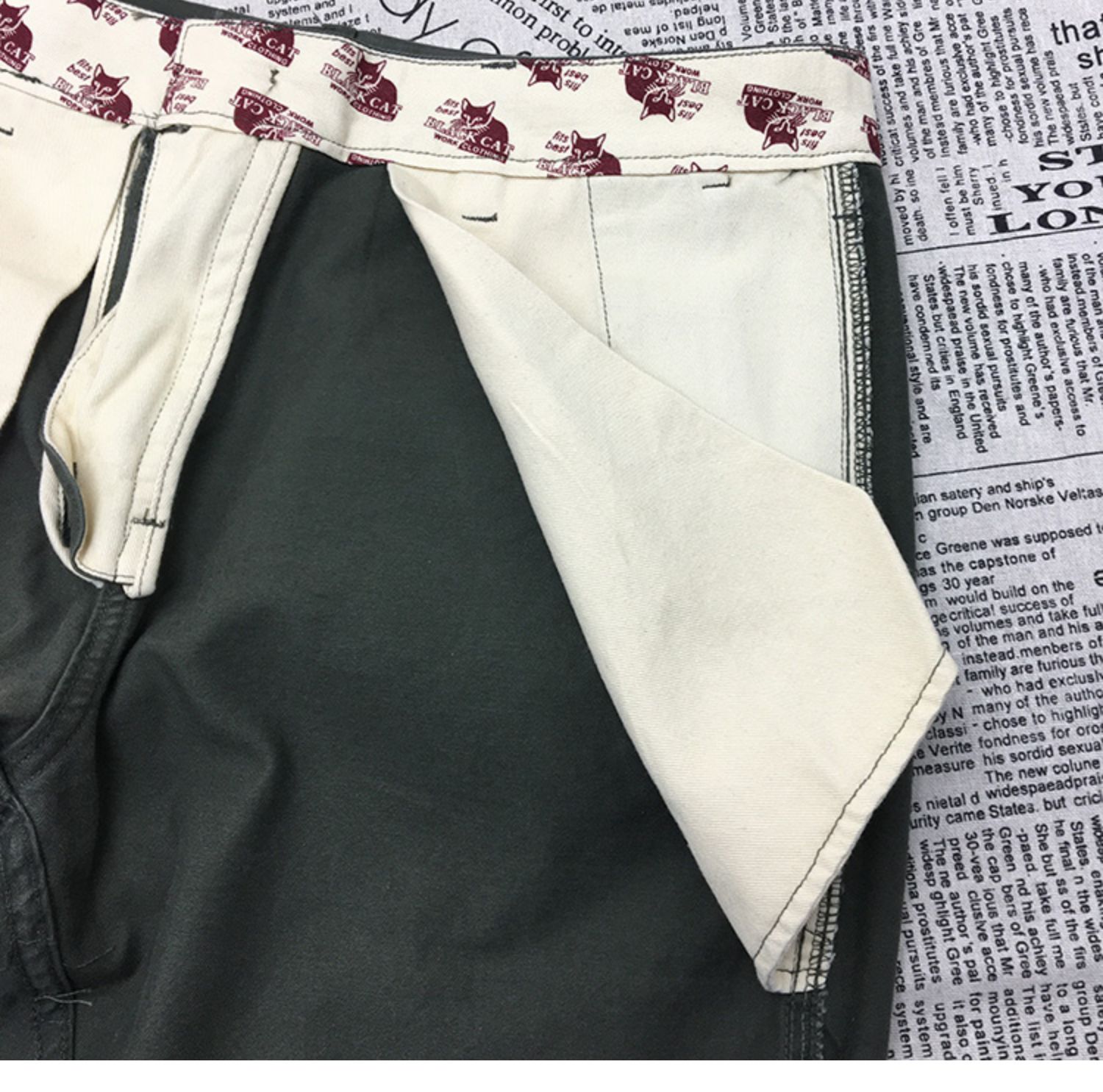 純棉薄款休閑褲男美式復古小直筒工裝卡其深灰黑色黑貓春夏長褲潮