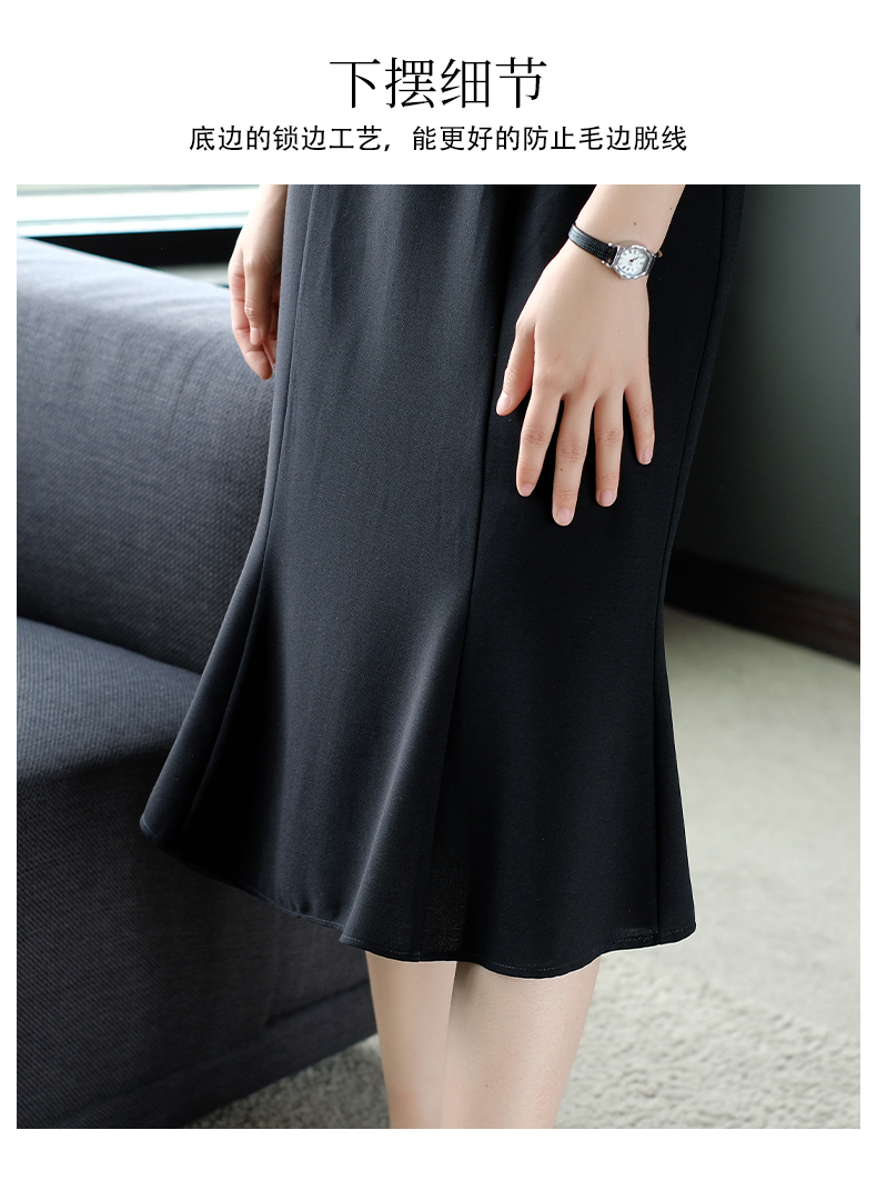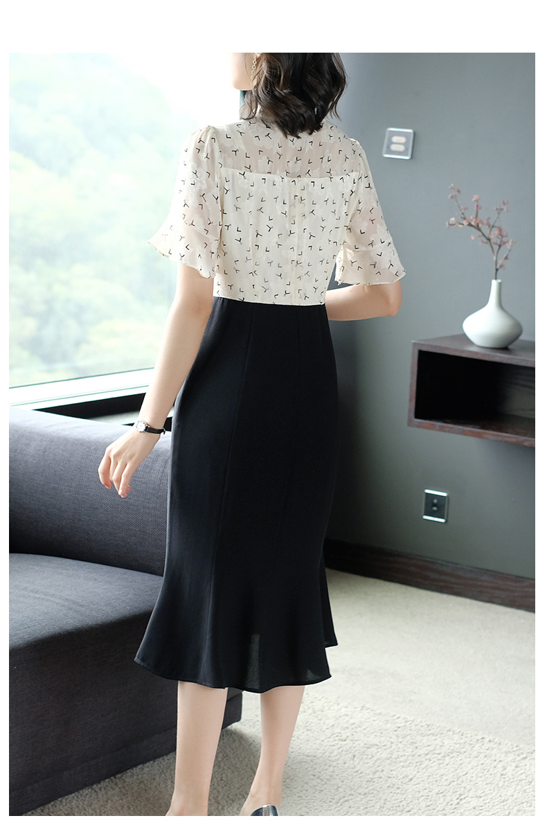 2023新款女夏季撞色黑白拼接荷葉袖ol風職業裝法式減齡魚尾連衣裙